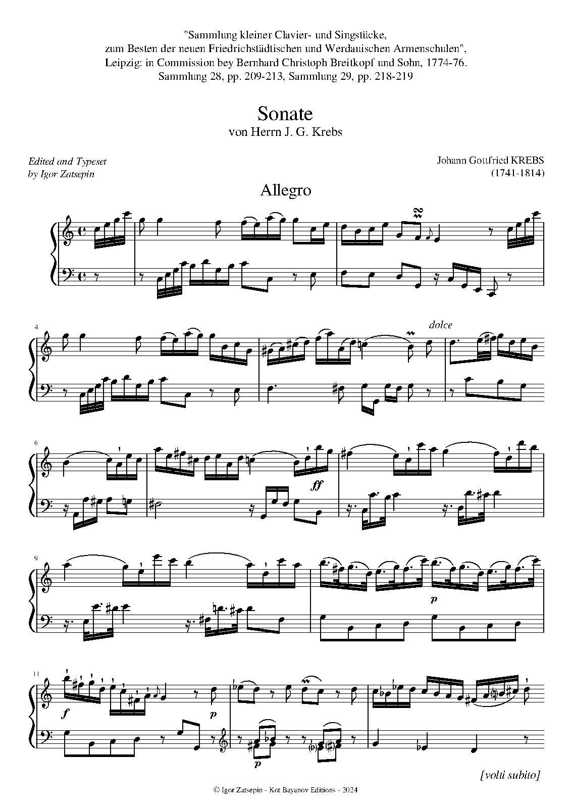 | Extra Information | "Sammlung kleiner Clavier- und Singstücke...", Breitkopf und Sohn, 1774-76 |