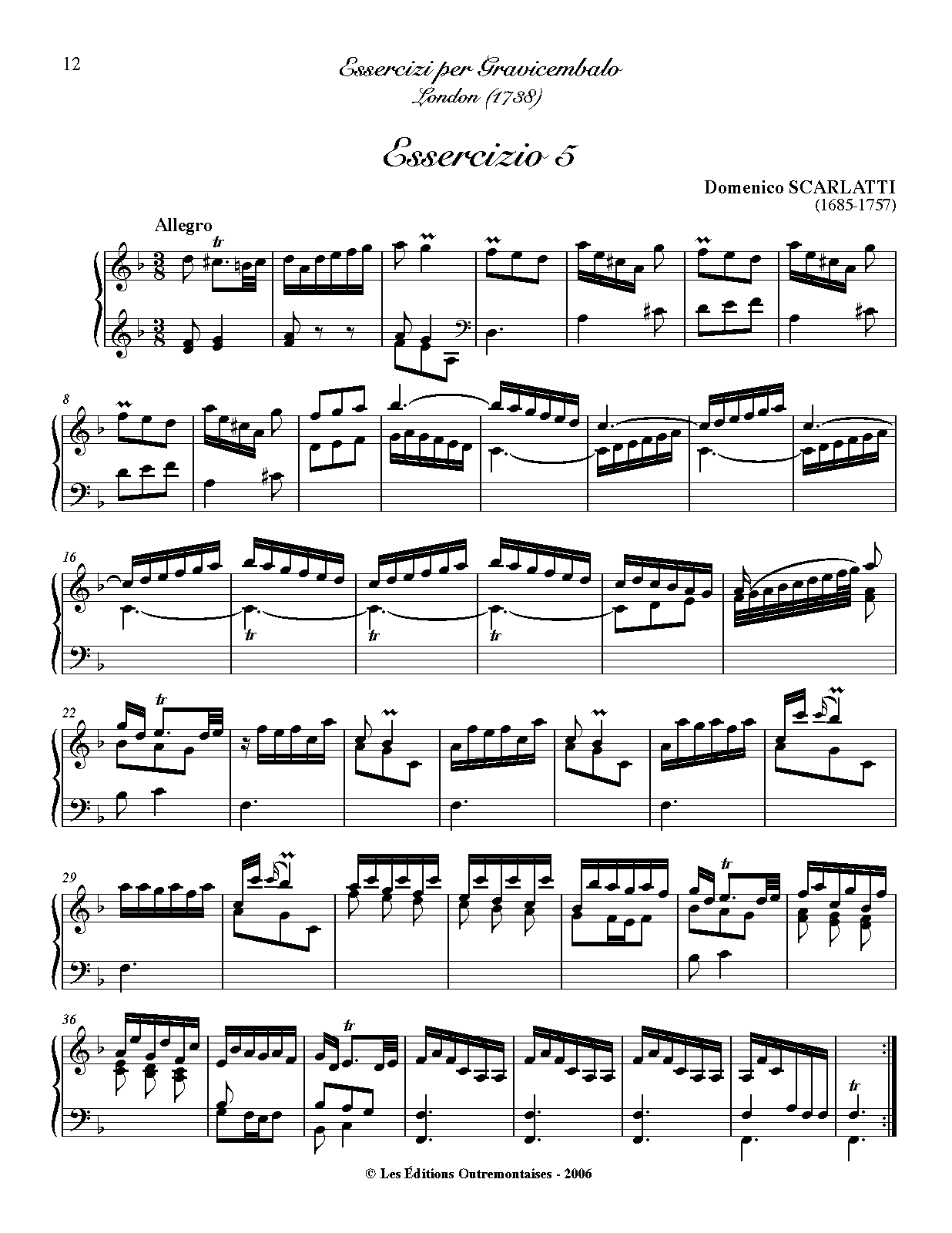 First Publication. 1738 in Essercizi per Gravicembalo (No.5)