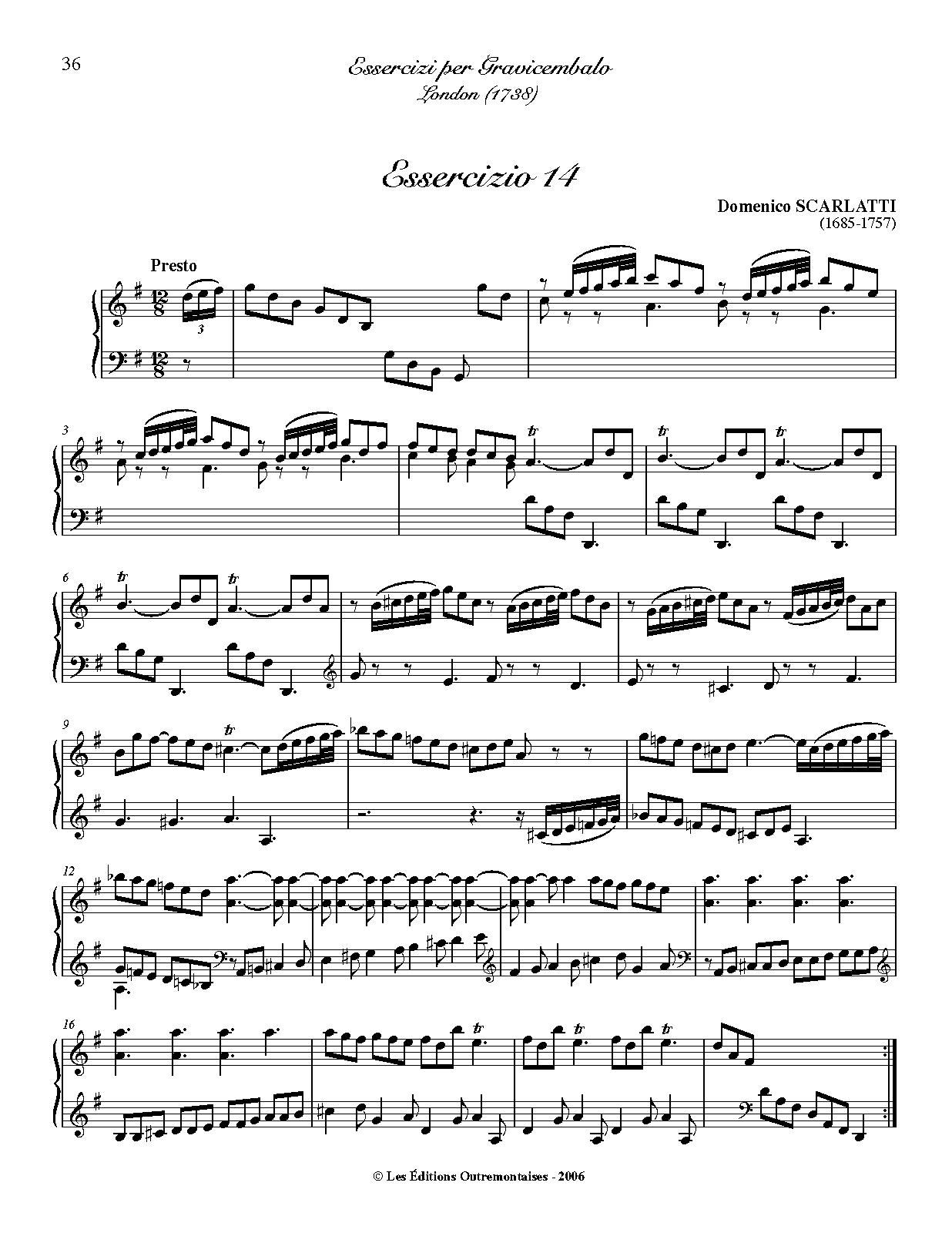 First Publication. 1738 in Essercizi per Gravicembalo (No.14)