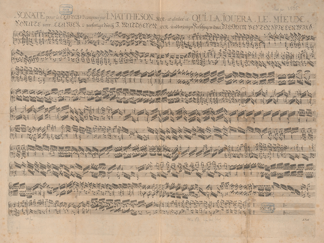 | Alternative. Title | Sonate pour le Clavecin composée par J. Mattheson, secr., et dédiée à qui la jouera le mieux. /