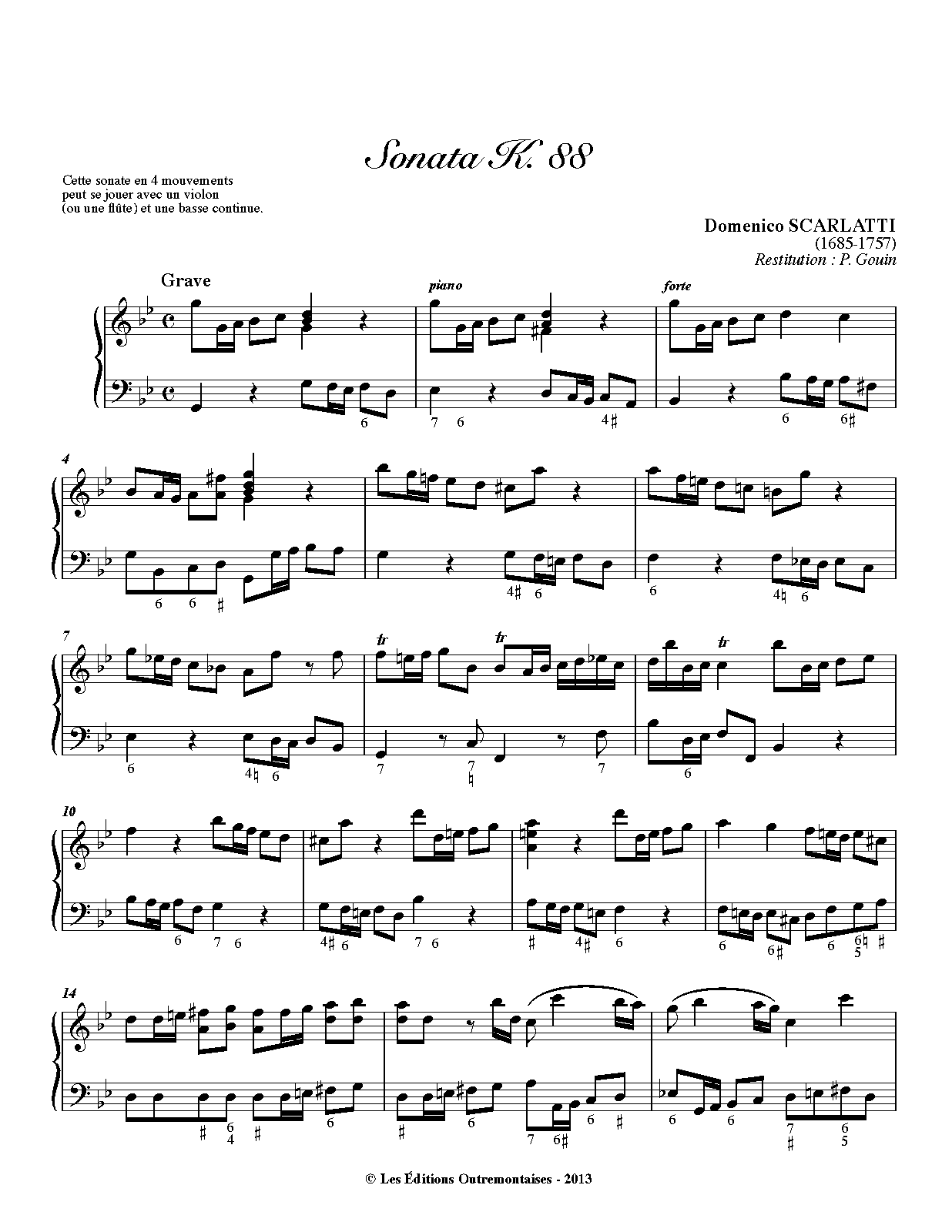 Extra Information Grove Music lists Sonatas K.81-88-89-90 & 91 as originally for "Solo instrument and continuo" (e.g. violin, flute). They have 4-movements. Grove Music does not give alternative instrumentation for solo keyboard, so perhaps those versions are arrangements not by Scarlatti. When played as harpsichord solo pieces, some harmonic filling might be necessary.