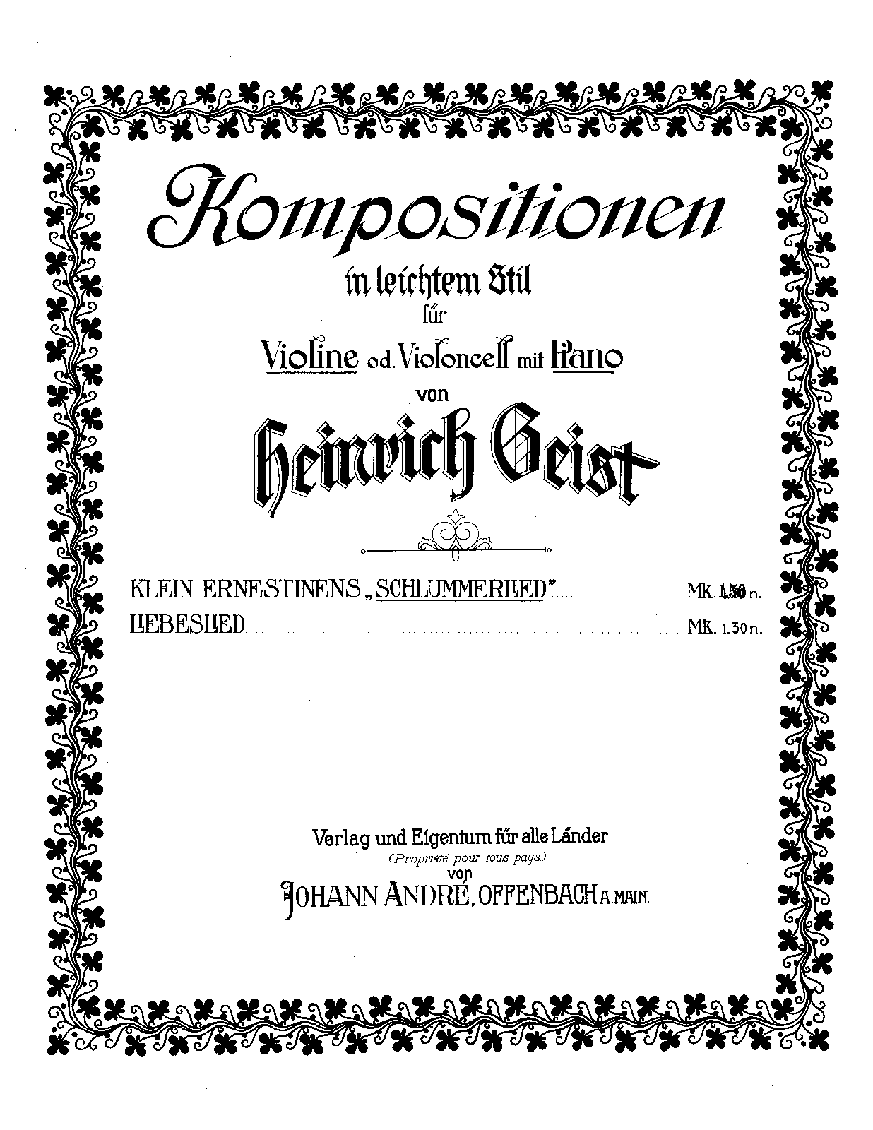 | Dedication | Seinem lieben Töchterchen Ernestine gewidmet |