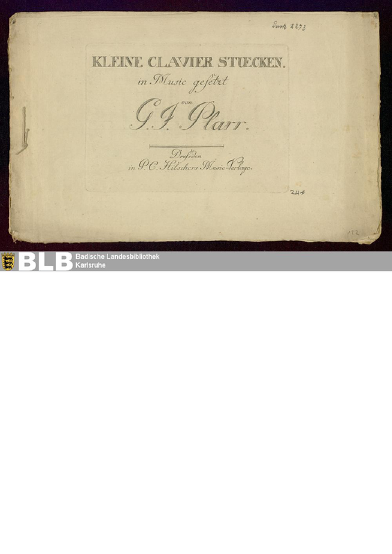 | Alternative. Title | Kleine Clavier Stuecken in Music gesetzt von G. I. Plarr |