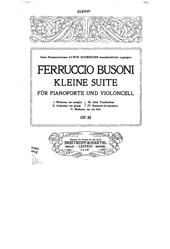 | Genre Categories | Suites; For cello, piano; Scores featuring the cello; |