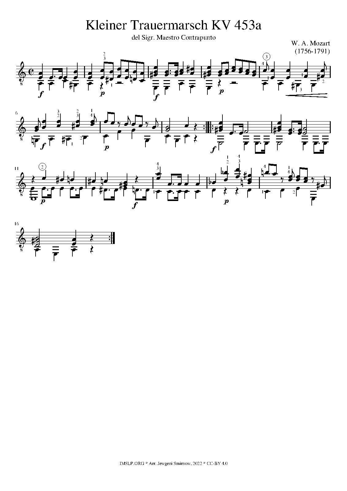 Piccola marcia funebre del Signor Maestro Contrappunto; Kleiner Trauermarsch; Pequeña marcha fúnebre en do menor (Mozart); Kleiner Trauermarsch, K. 453a; Petite marche funèbre en do mineur; マエストロ対位法氏の小葬送行進曲