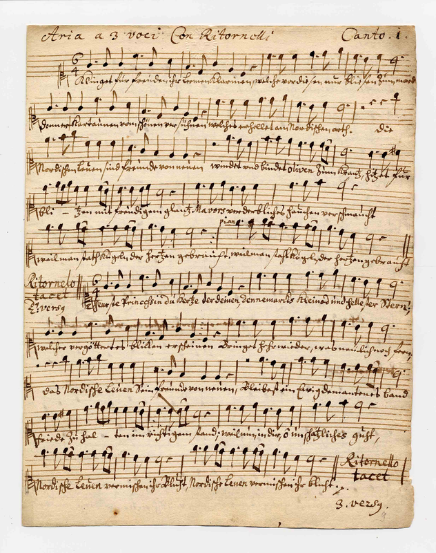 Aria sopra la Nozze di Sua Maesta il Re di Svecia humillimamente composta per Dieter: Buxtehude mpr (3 voci c. c. B. Con Ritornelo di 2 violini e si piace Ritornelo di 2 Trobetti