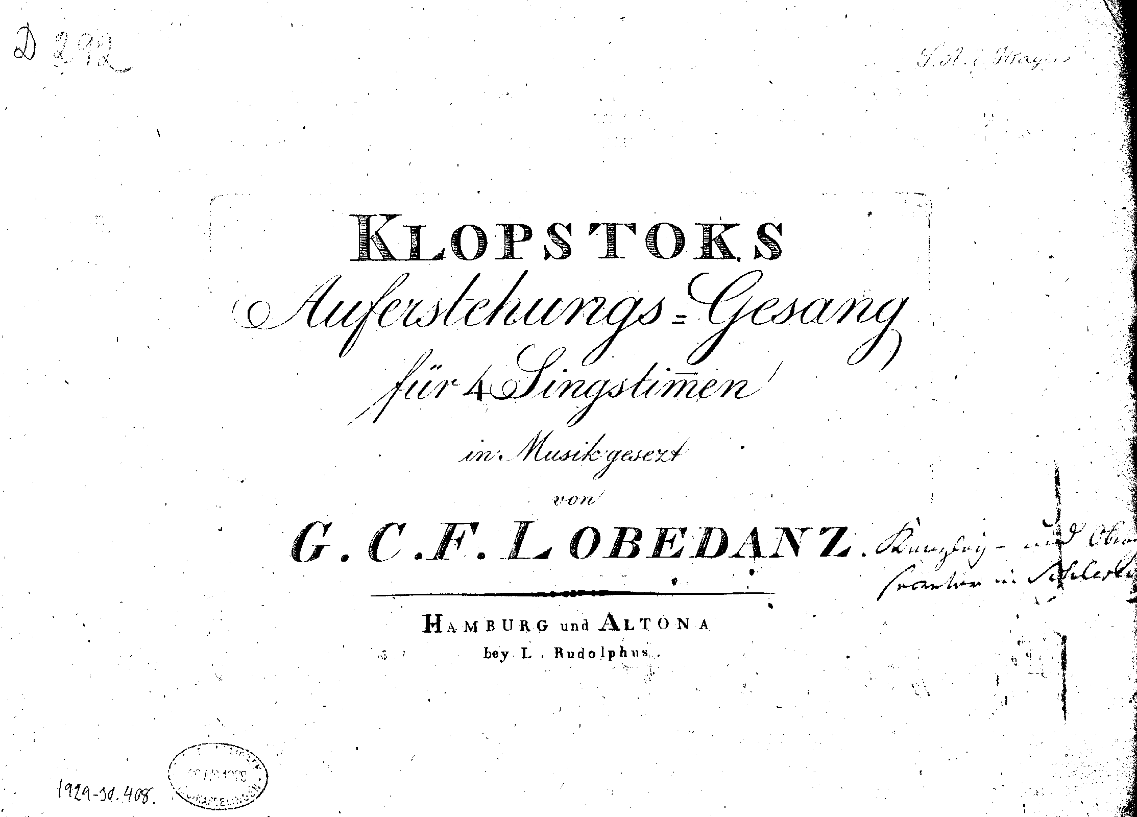 | Work Title | Klopstoks Auferstehungs-Gesang für 4 Singstimmen |