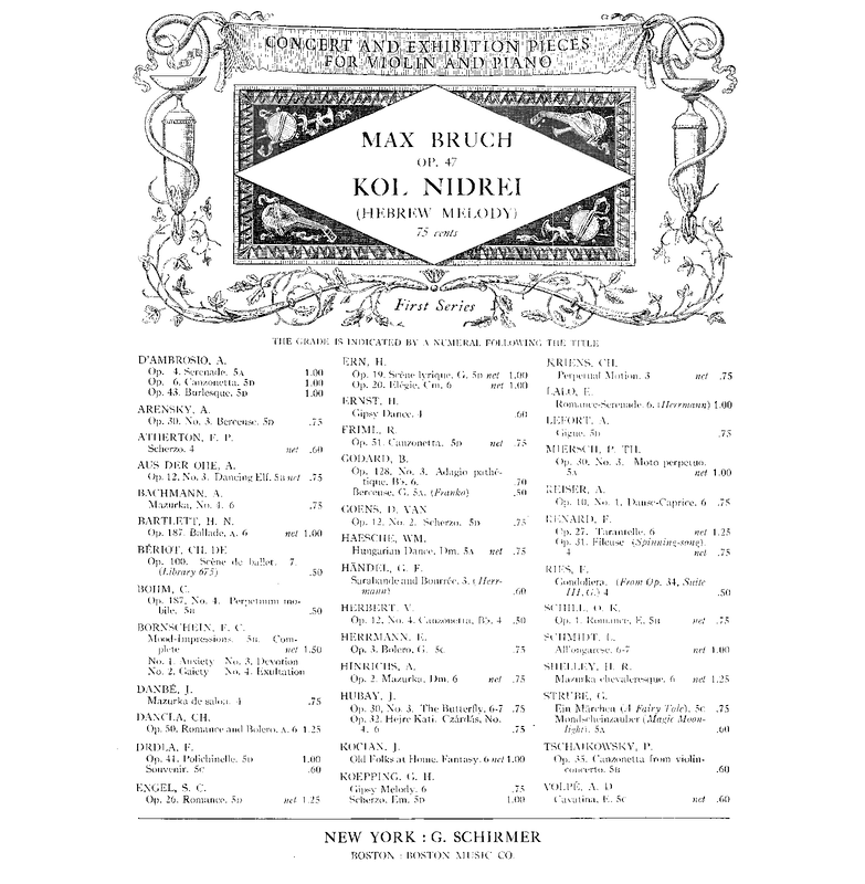 | External Links | Wikipedia article Kol Nidrei - Scores at Sheet Music Plus |