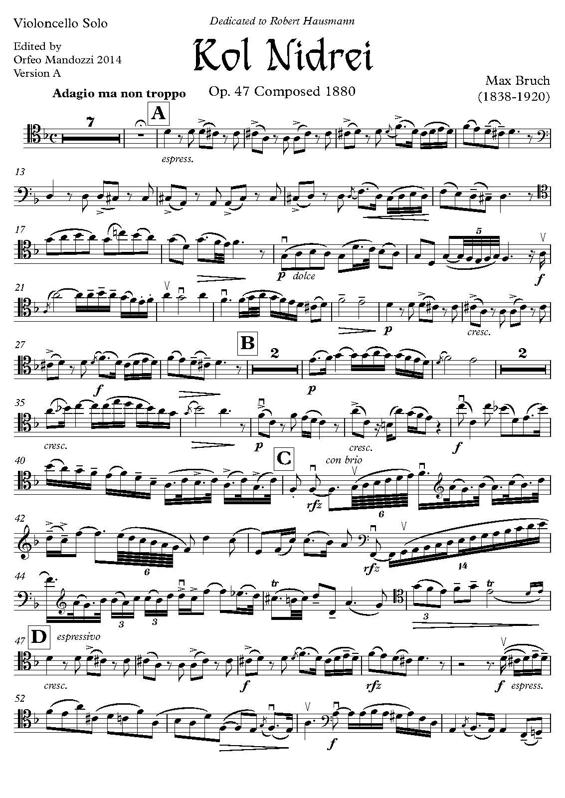| Alternative. Title | Kol Nidrei (Stimme des Gelübdes), Adagio for Cello and Orchestra |