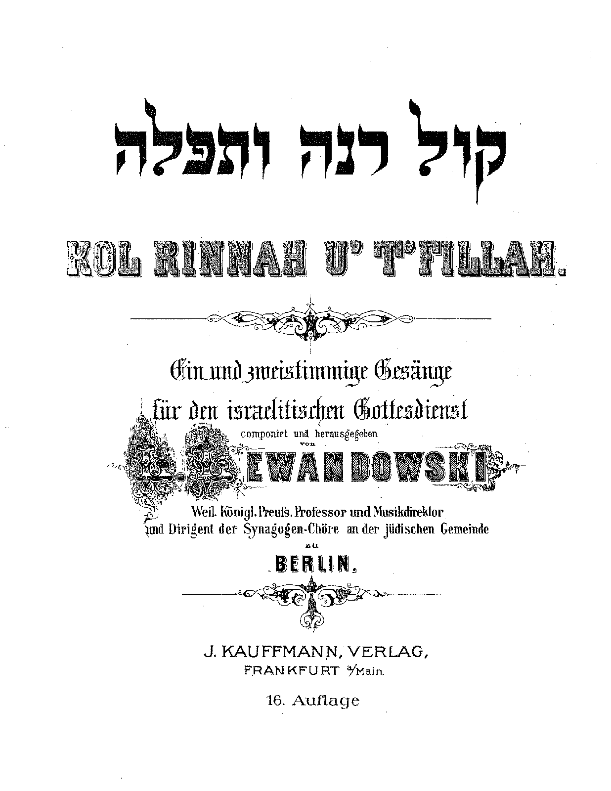 | Alternative. Title | Kol Rinnah uT'fillah |