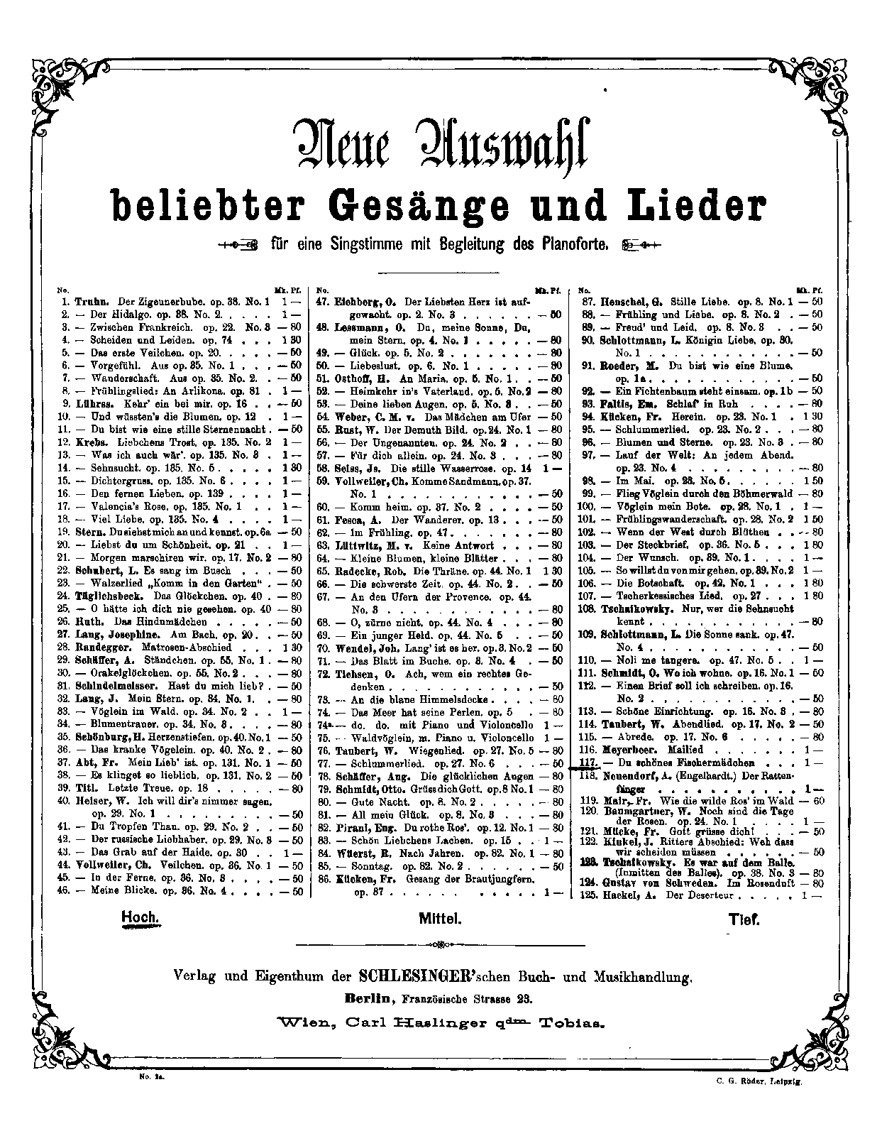 | Genre Categories | Songs; For voice, piano; For voices with keyboard; |