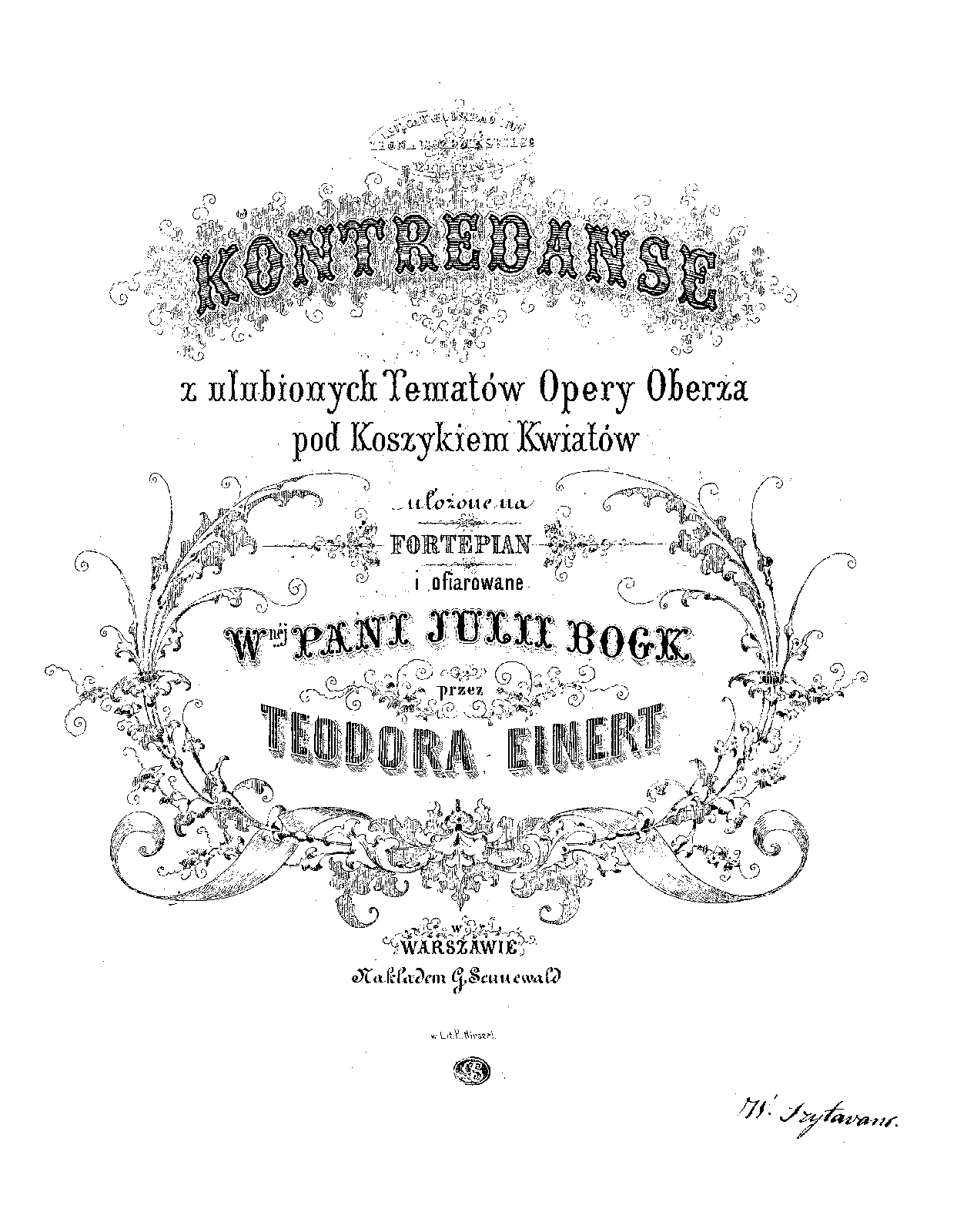 | Alternative. Title | Kontredanse z ulubionych tematów opery Oberża pod koszykiem kwiatów; [Contra dances based on favourite themes of the opera Tavern under a flower basket]; |