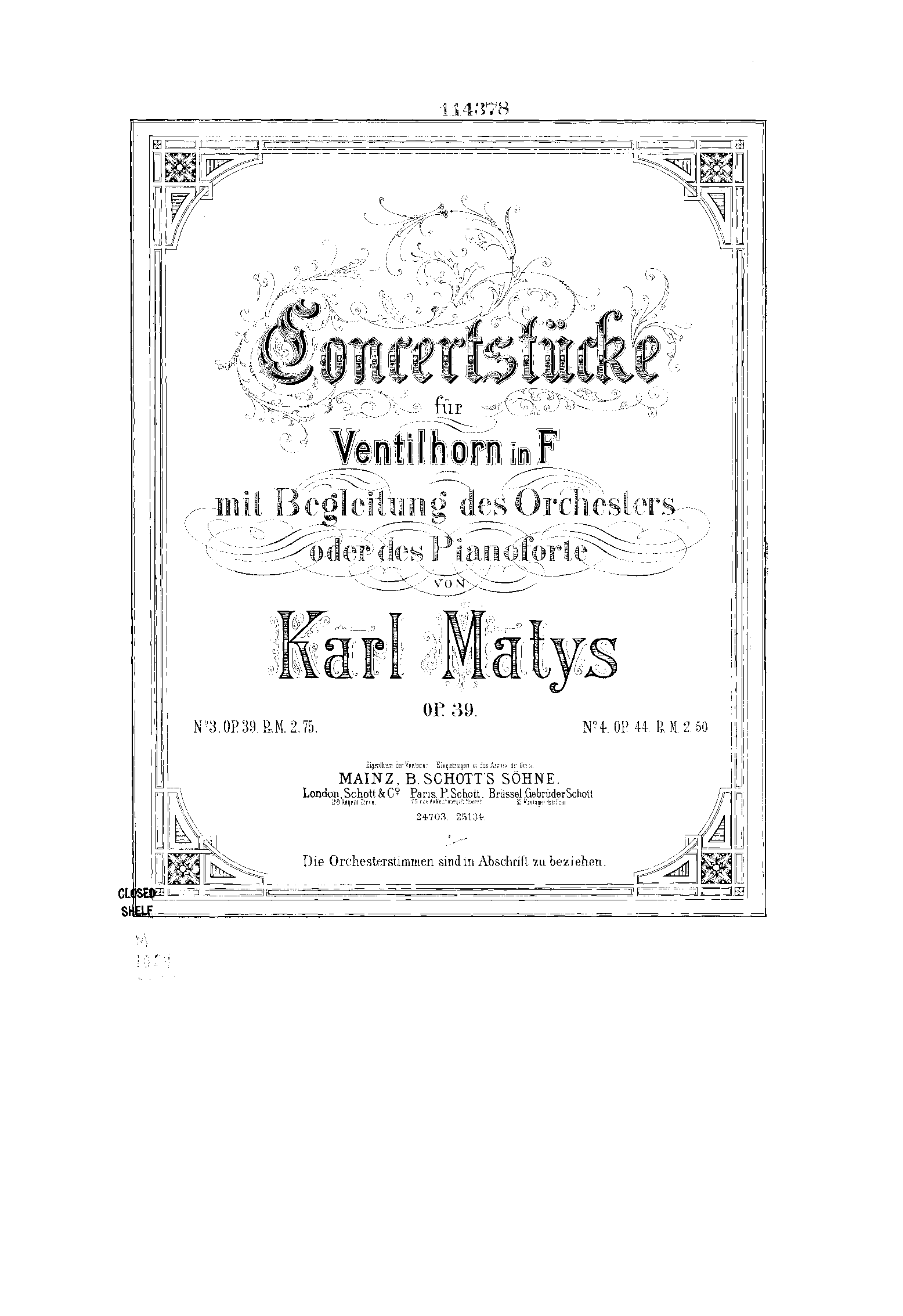 | Genre Categories | Concertinos; Concertos; For horn, orchestra; |