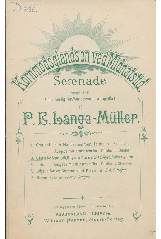 | Genre Categories | Serenades; For voice, piano; For voices with keyboard; |