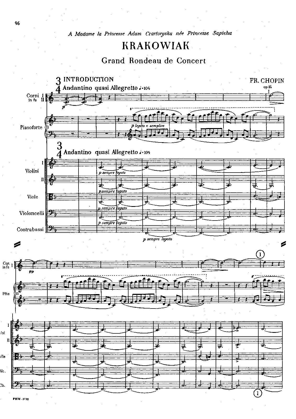Name Aliases Rondò a la Krakowiak; Gran Rondo de Concierto Krakowiak; Krakowiak, piano, orchestra, op. 14, F major
