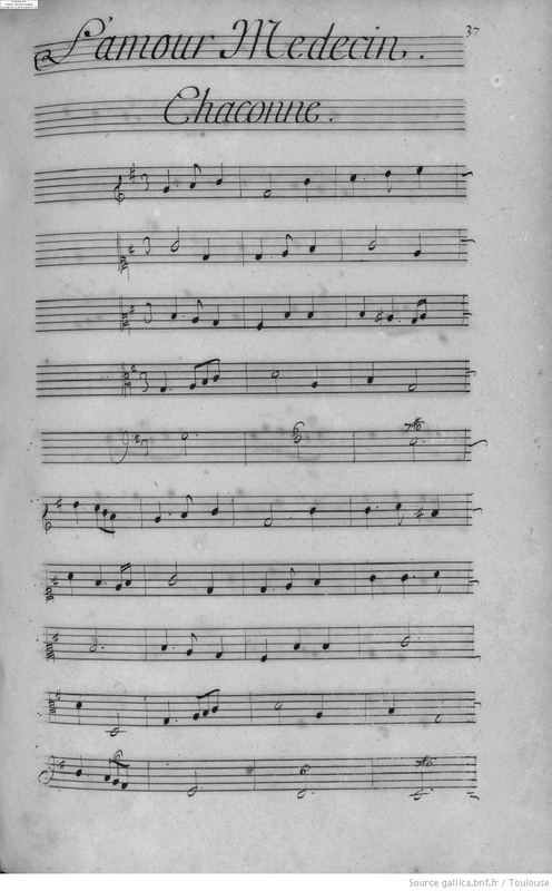 ⇒ 6 more: Ritournelle pour le Récit de laMusique, le Ballet et la Comédie • Ritournelle pour donner du Plaisir • Entrée: Champagne heurtant aux portes de 4 Médecins • Pour les 4 Médecins • Entrée pour les Trivelins et Scaramouches • Engraving files (Finale 2003)
