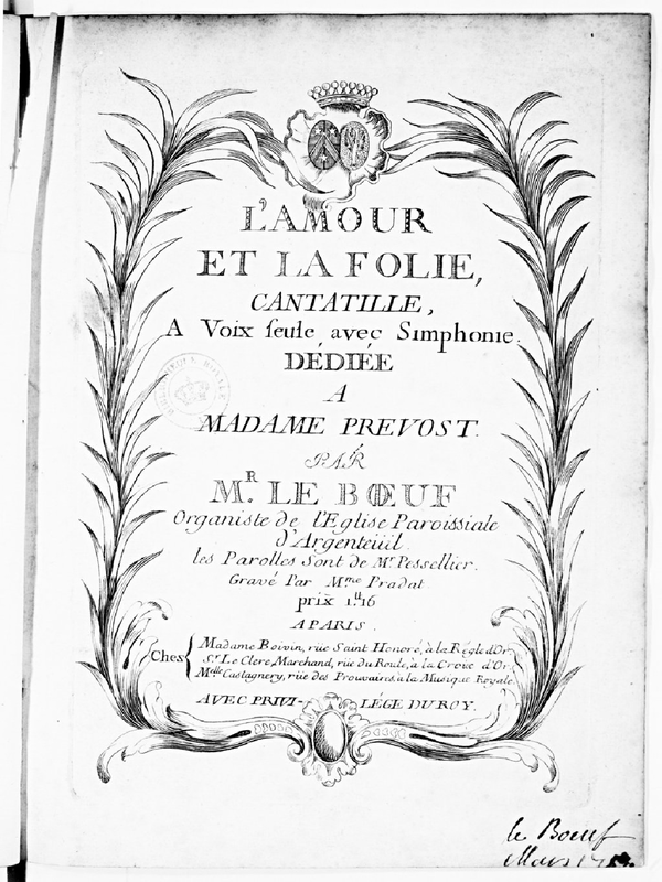 | Alternative. Title | L'Amour et la folie, cantatille à voix seule avec simphonie |