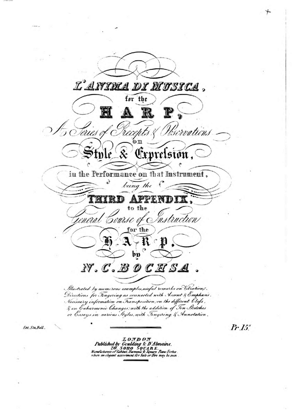| Alternative. Title | L'Anima di Musica for the harp, a series of precepts & observations on style & expression, in the performance on that instrument, being the third appendix to the General Course of Instruction for the Harp |