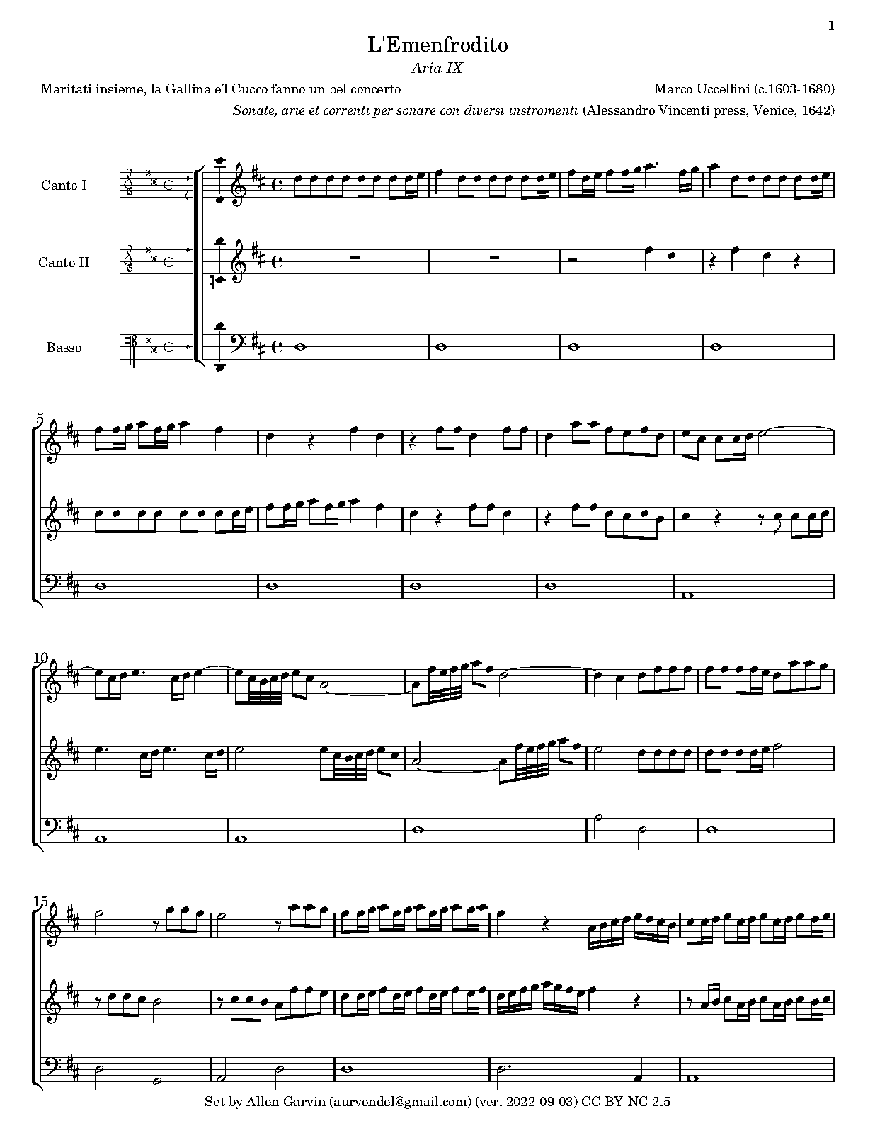| First Publication | 1642 in Sonate, arie et correnti, Op.3 (Uccellini, Marco) |