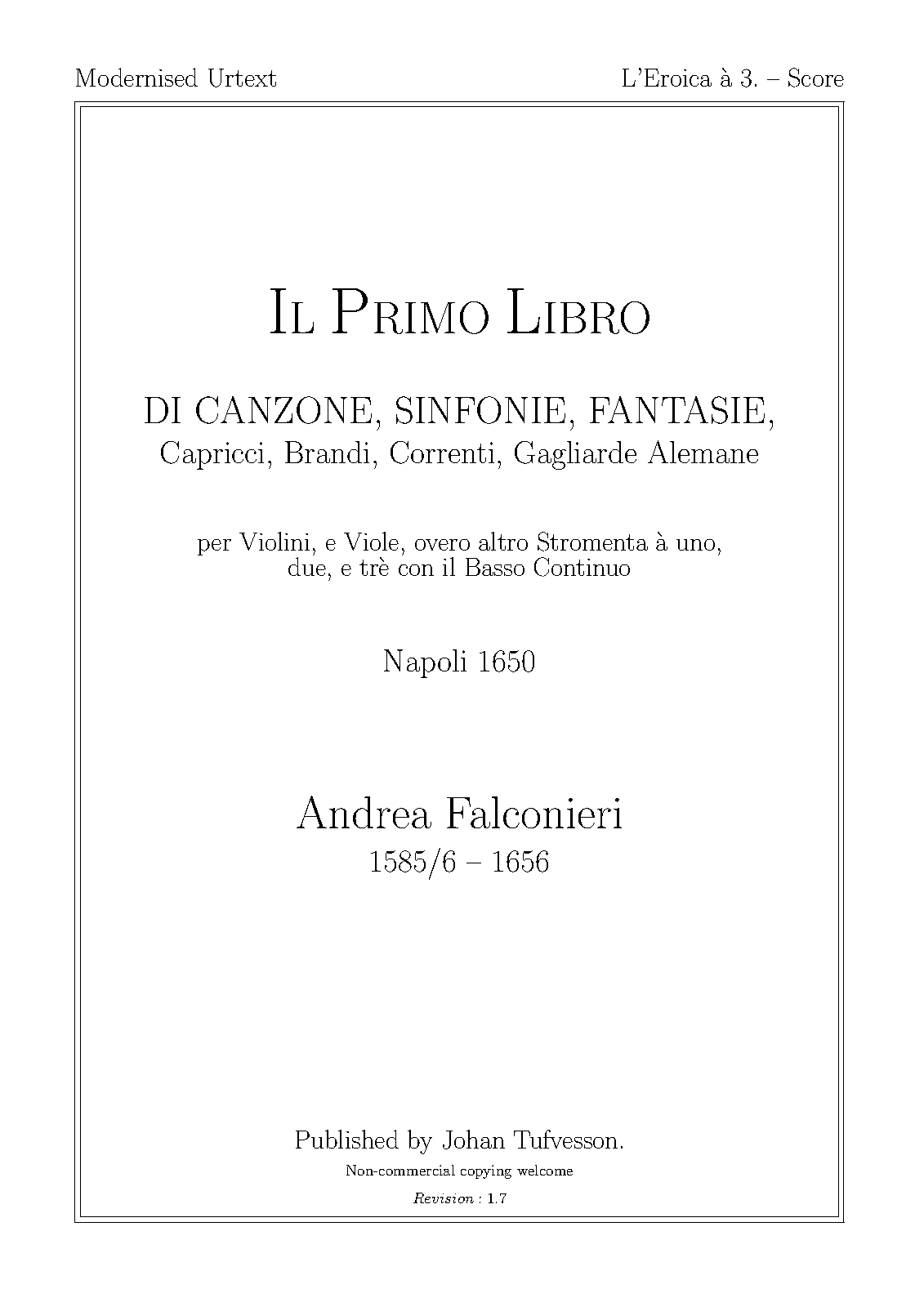| First Publication. | 1650 in Il primo libro di Canzone, Sinfonie, Fantasie, etc. (No.3) |
