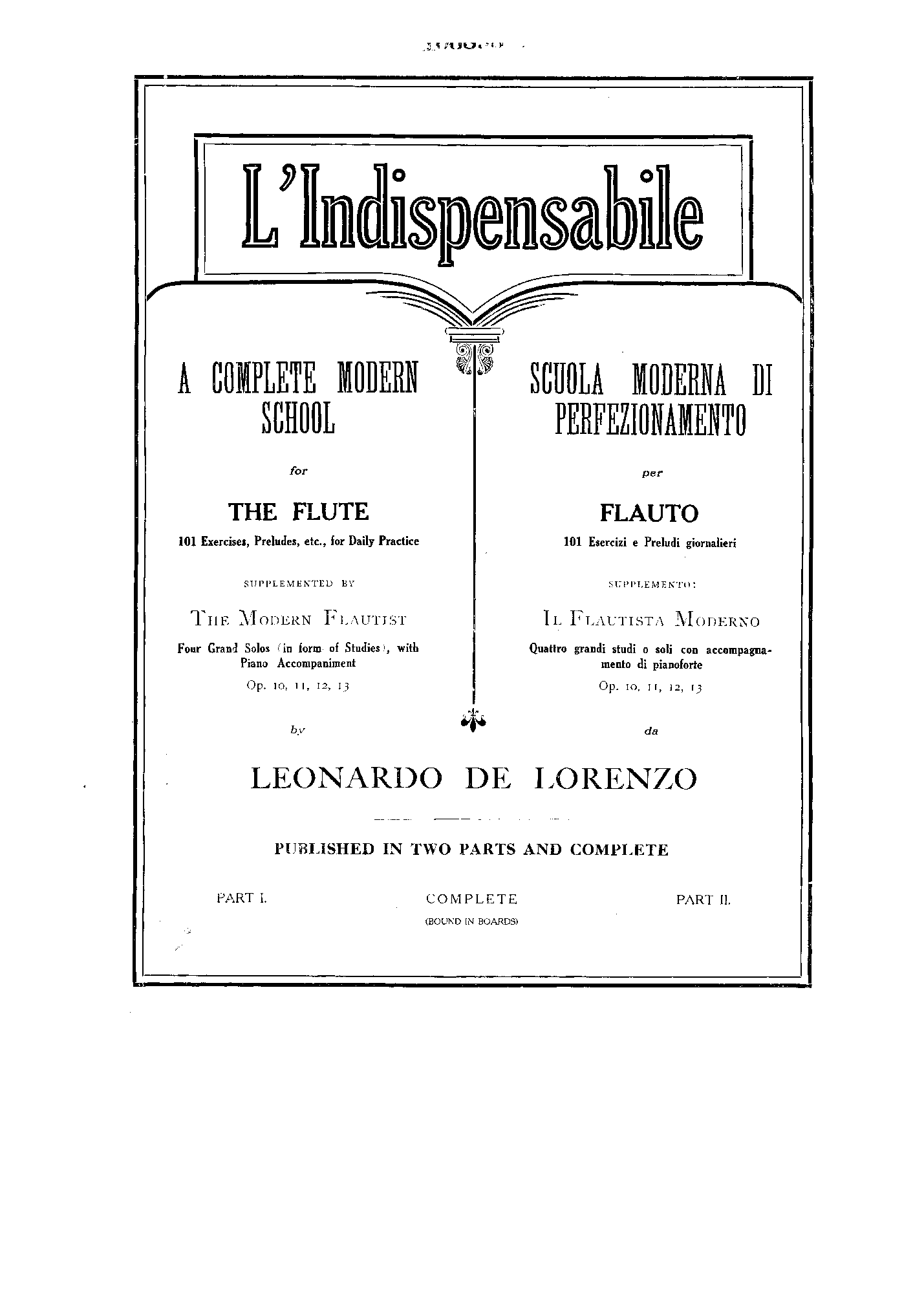 | Alternative. Title | A complete modern school for the flute ; Scuola moderna di perfezionamento per flauto |