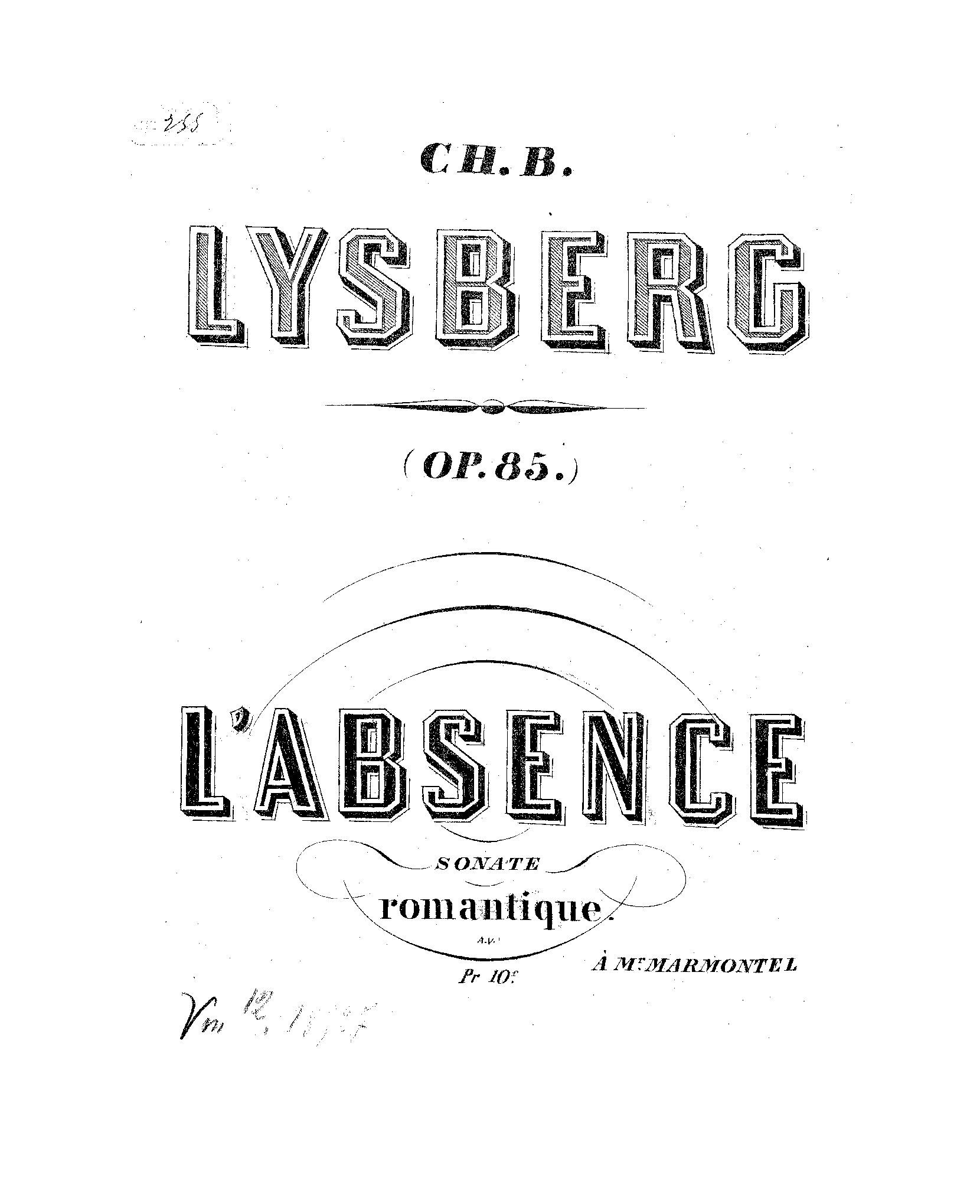 | Dedication | Hommage amical à Mr. A. Marmontel |
