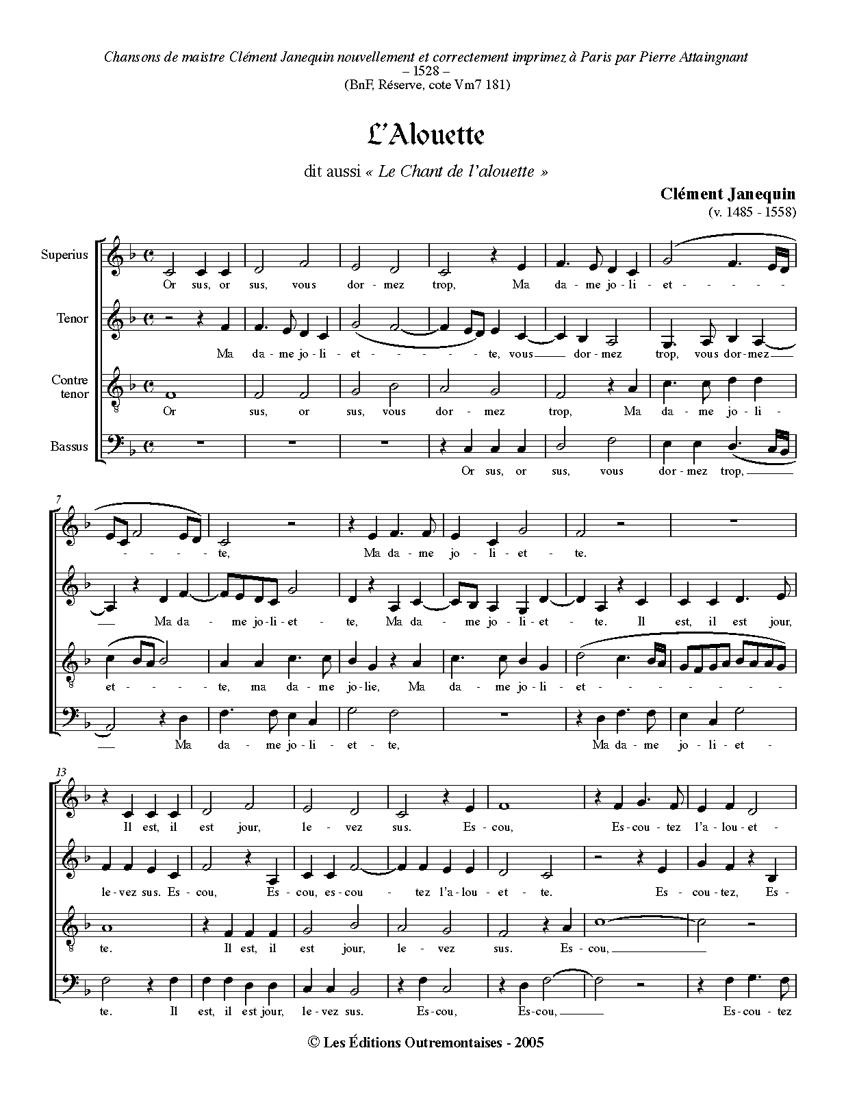Chansons de maistre C. Janequin nouvellement et correctement imprimeez, Attaingnant, Paris [vers 1528].
