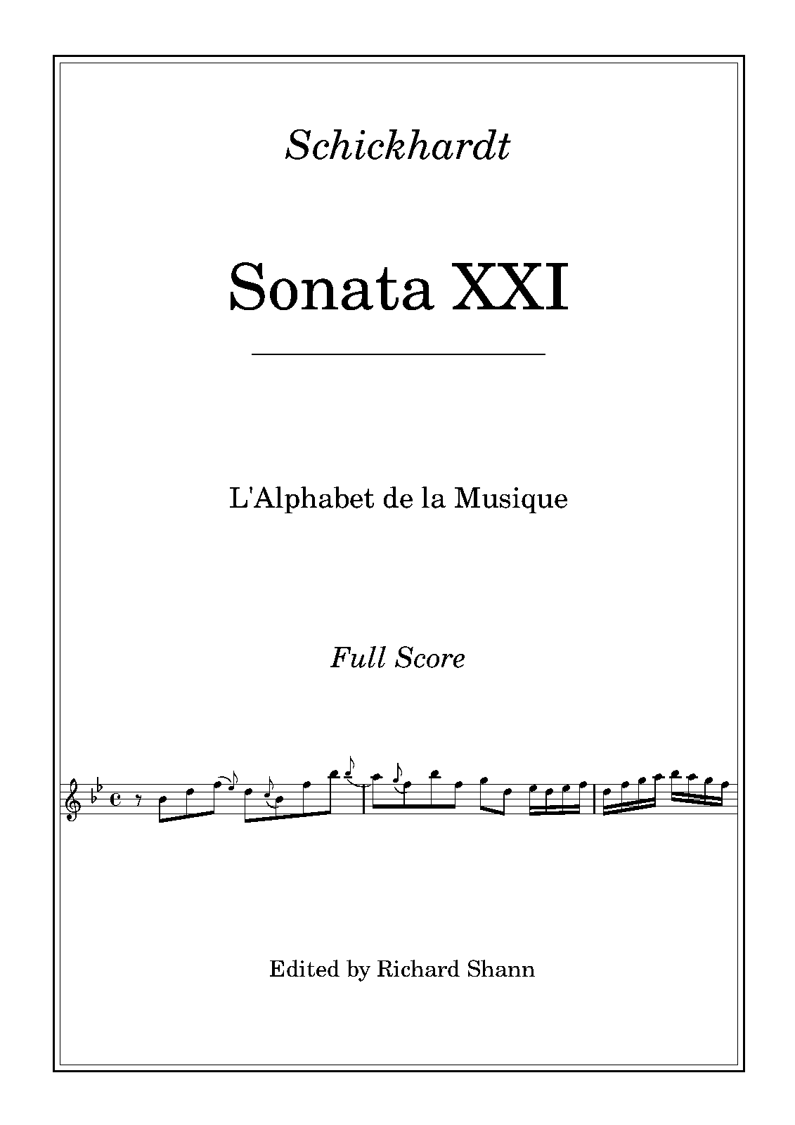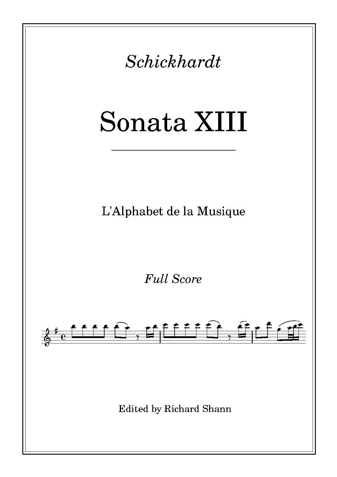 | Alternative. Title | L'Alphabet de la Musique contenant, XXIV Sonates - Solos, pour la Flute Traversiere ou pour le Violon avec une Basse Continue, selon la Clef Françoise pour la Flute a Bec, avec une Transposition si on veut se servir des antres Clefs, on Si on trouvre trop de difficulté á joüer les Tons les plus difficiles. (...) XXX Ouvrage |