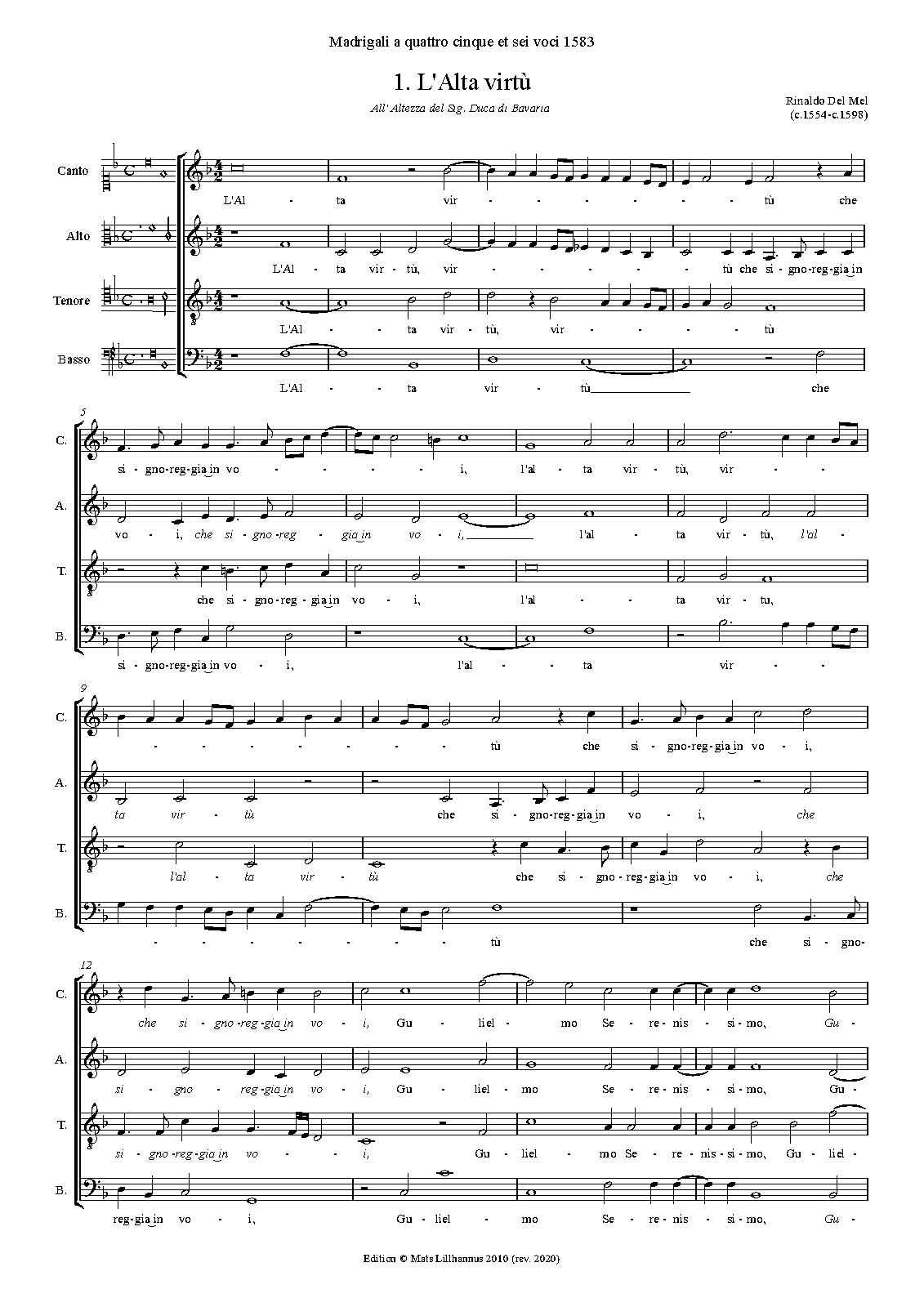 Printed in Del Mel's 1583 madrigal collection for 4-6 voices.