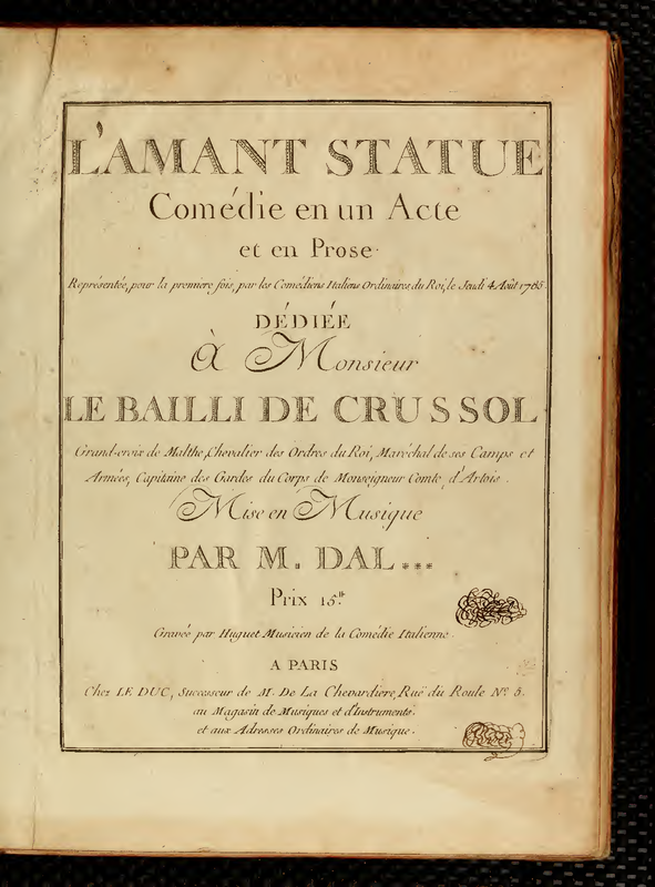 | First Performance. | 1785-08-04 in Paris, Comédie-Italienne |