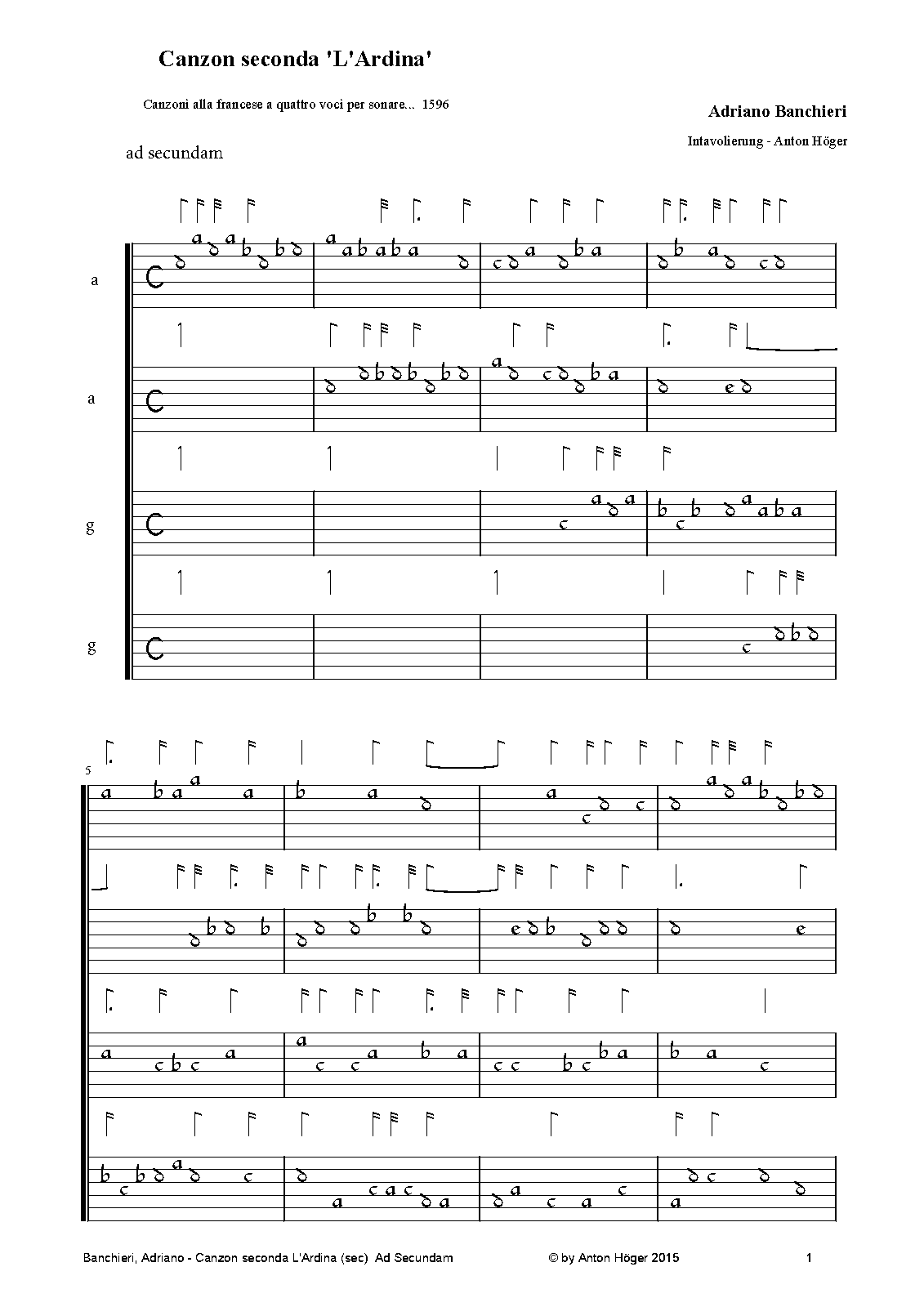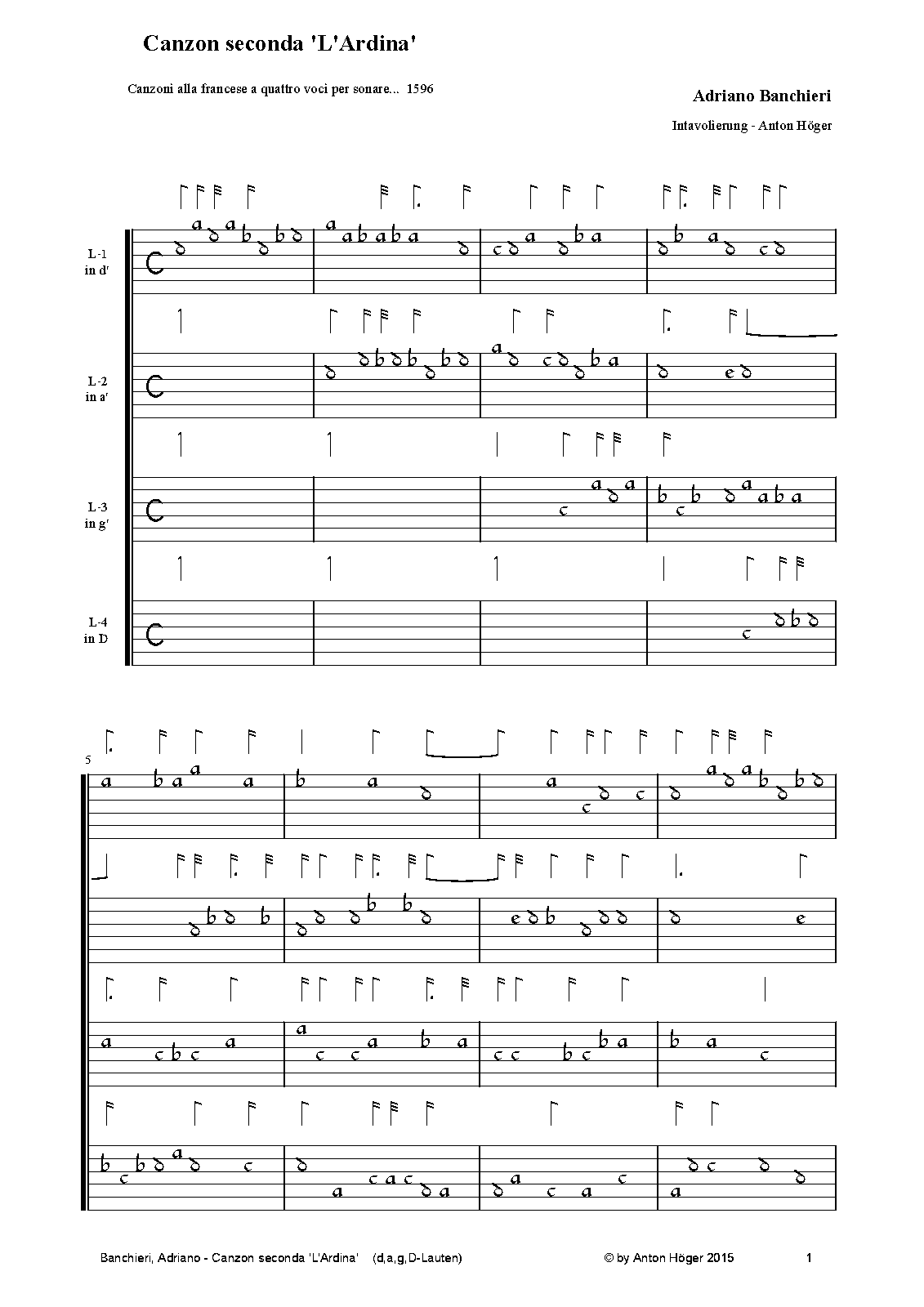 | First Publication | 1596 in Canzoni alla francese (No.2) |