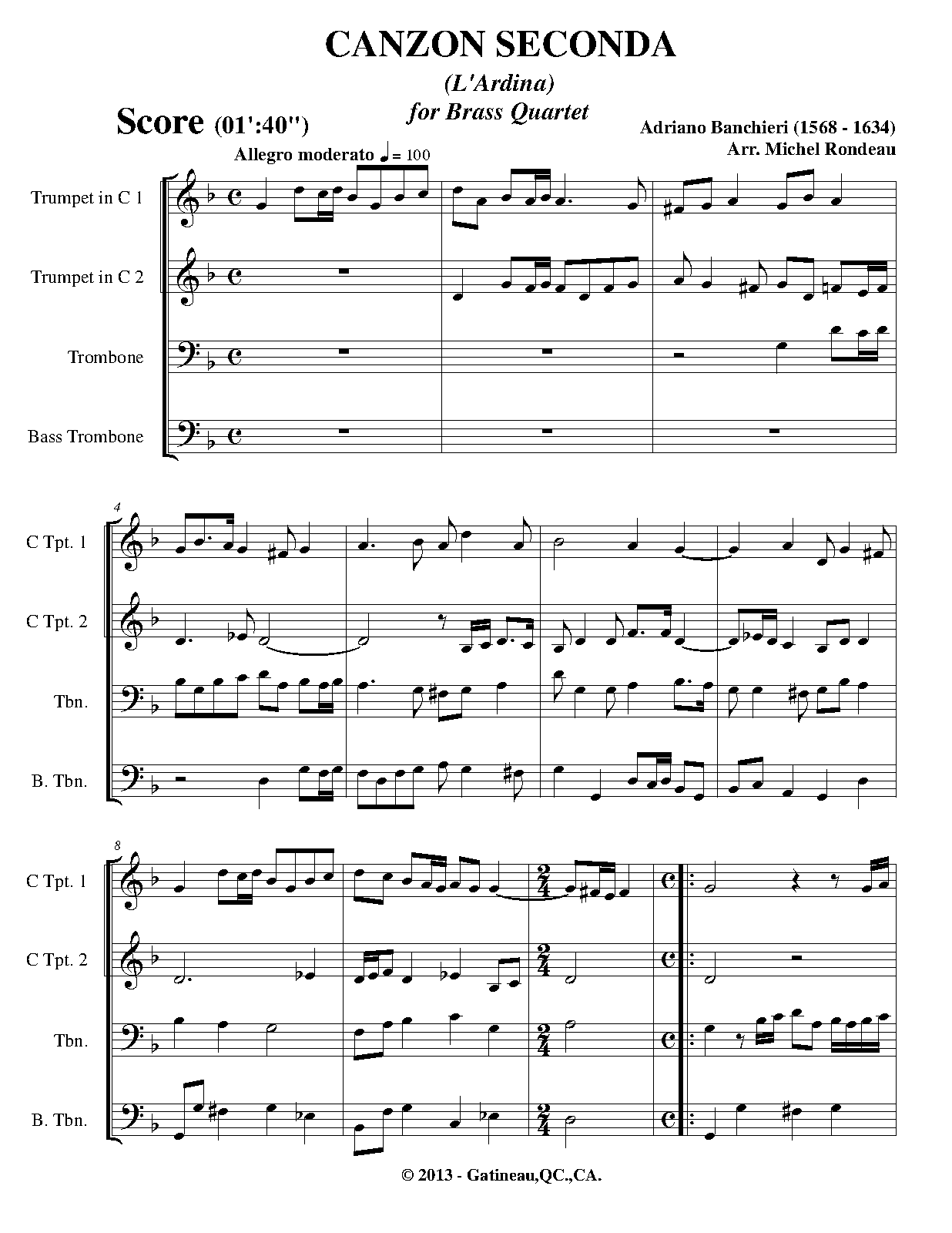 | Genre Categories | Canzonas; For treble, alto, tenor, bass instruments; Scores with open instrumentation; |