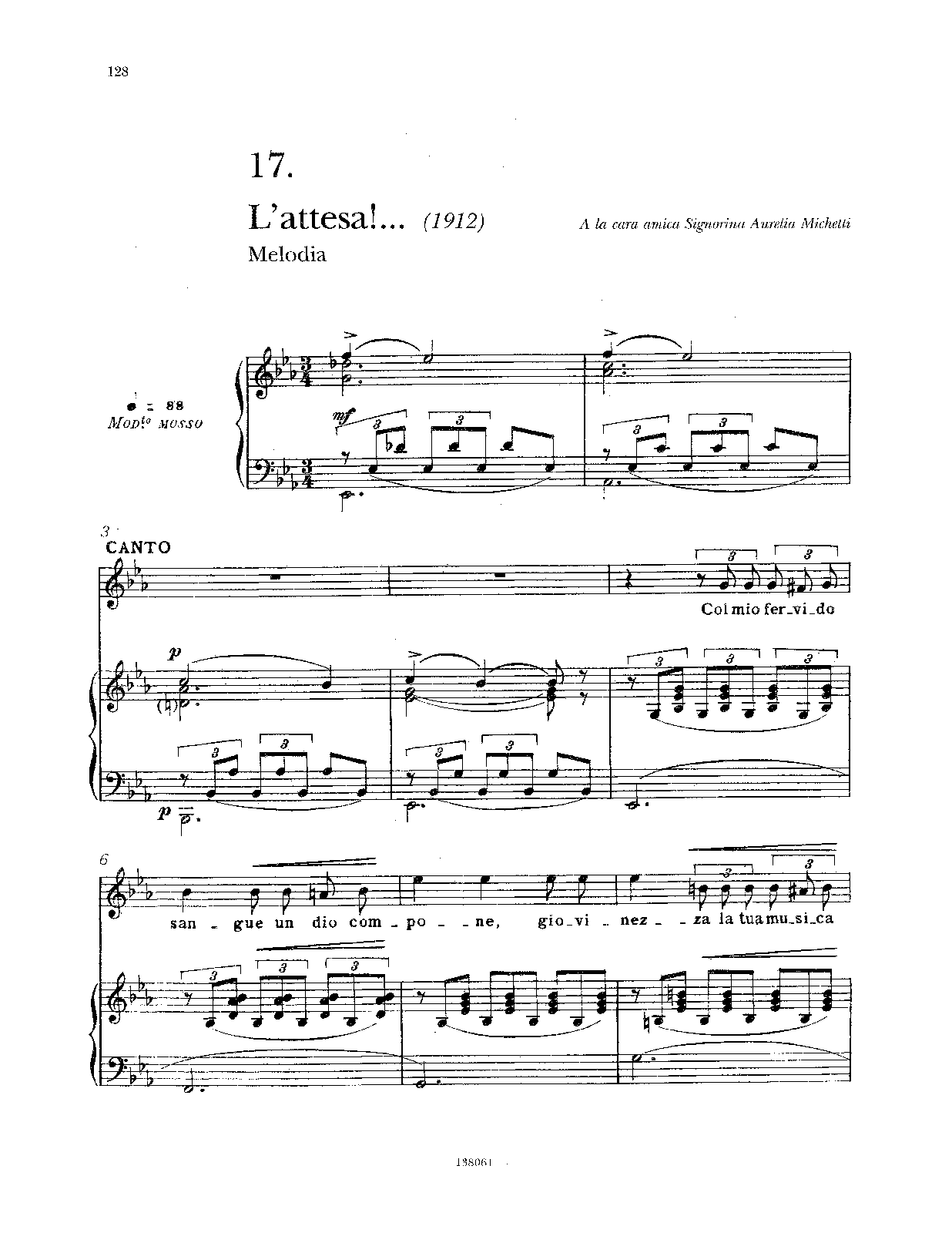 | Dedication | Signorina Aurelia Michetti |