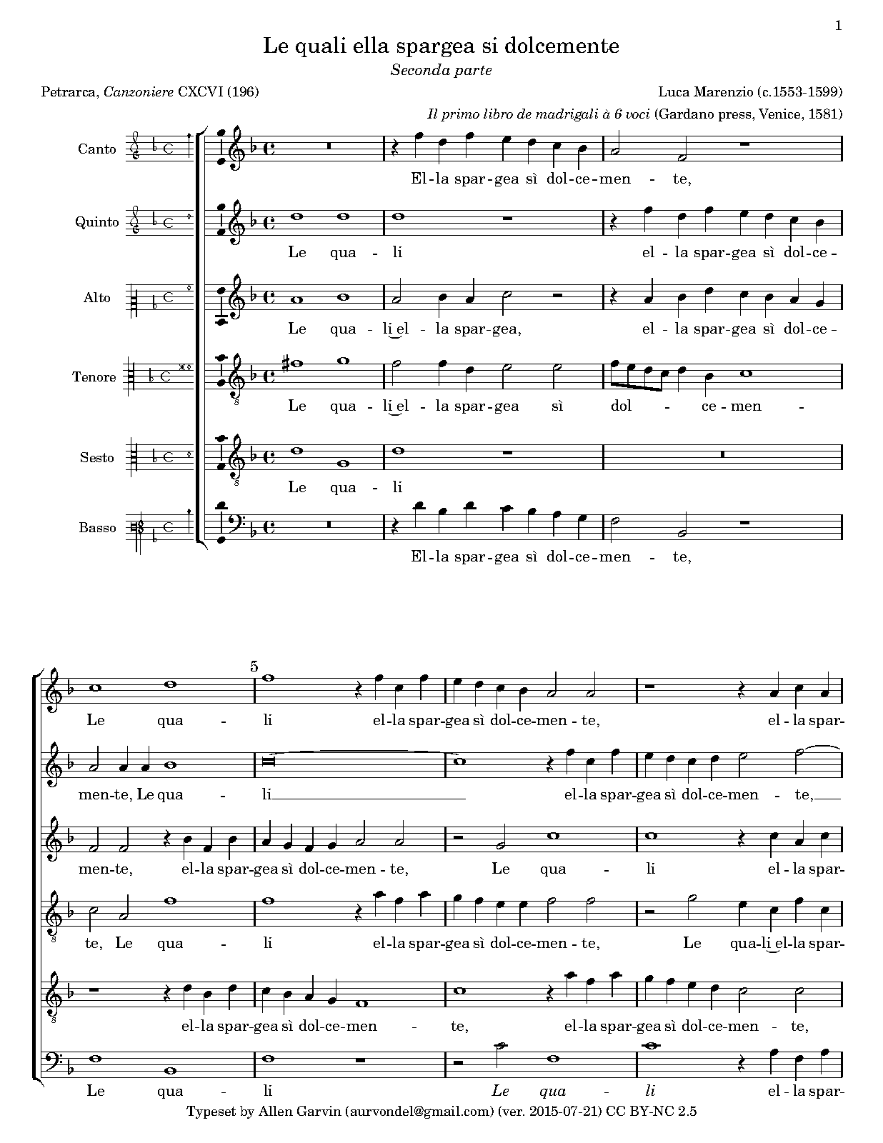 | First Publication | 1581 in Il primo libro de madrigali a 6 voci (no.17) |