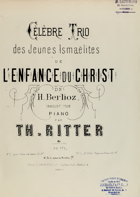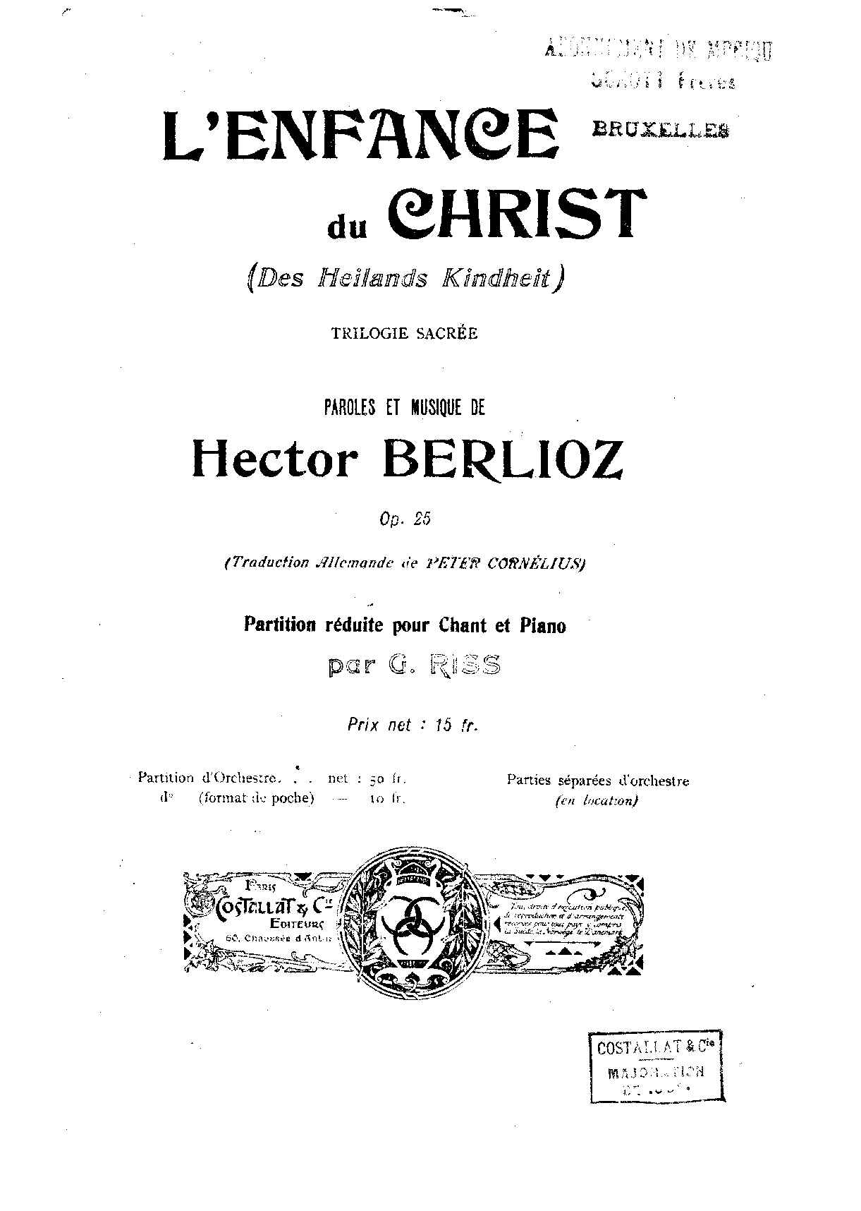 • Leipzig: Breitkopf und Härtel, n.d. (1901), as part of Hector Berlioz Werke (1900–07), Serie IV, Band IX, edited by Charles Malherbe and Felix Weingartner; overture to La Fuite en Égypte published separately in Serie II, Band V (1901)