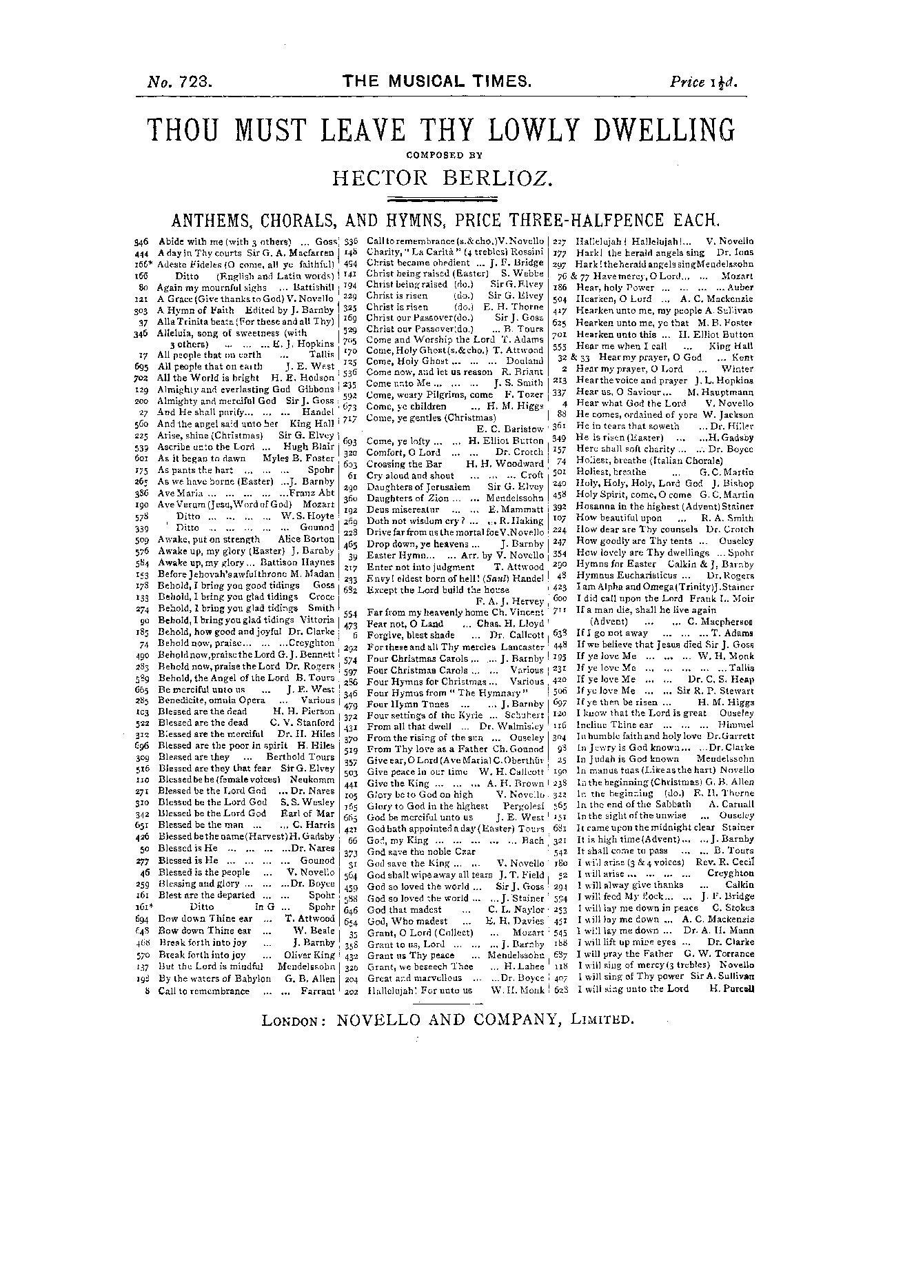 Les francs-juges, H 23 · Benvenuto Cellini, H 76 · Les Troyens, H 133 · Béatrice et Bénédict, H 138