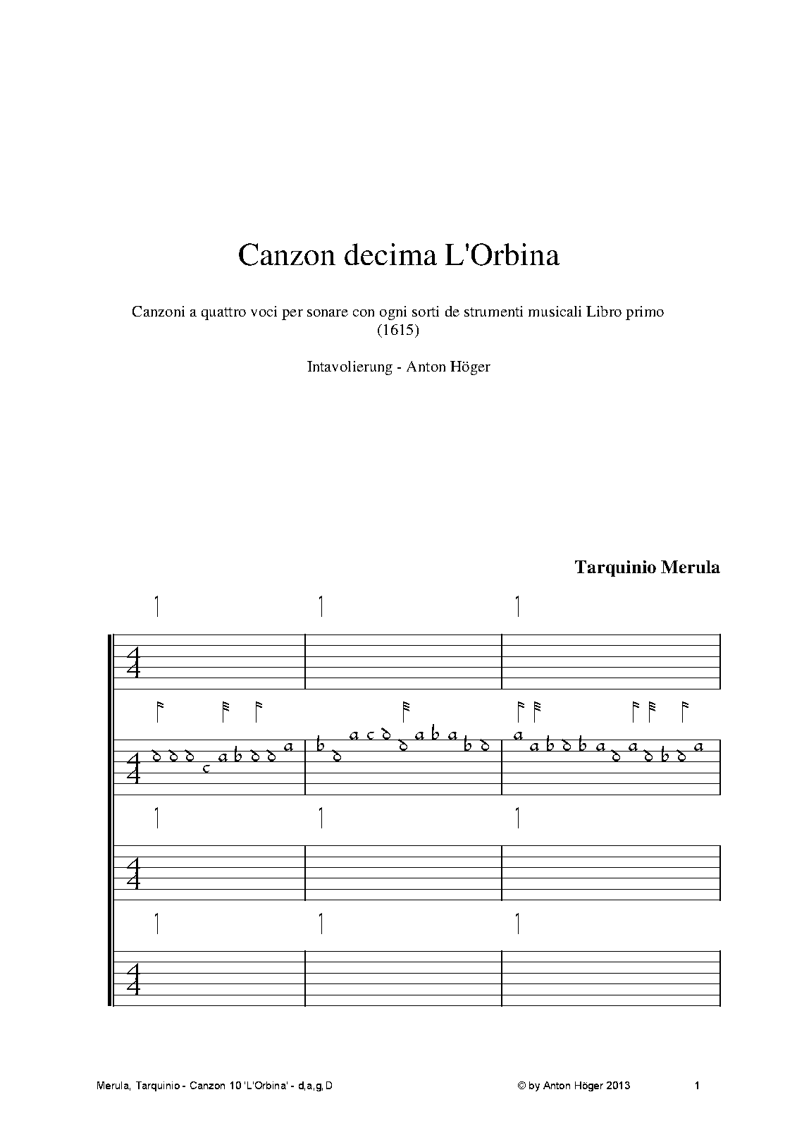 | First Publication | 1615 in Canzoni a quattro voci per sonare con ogni sorti de strumenti musicali, Op.1 (No.10) |