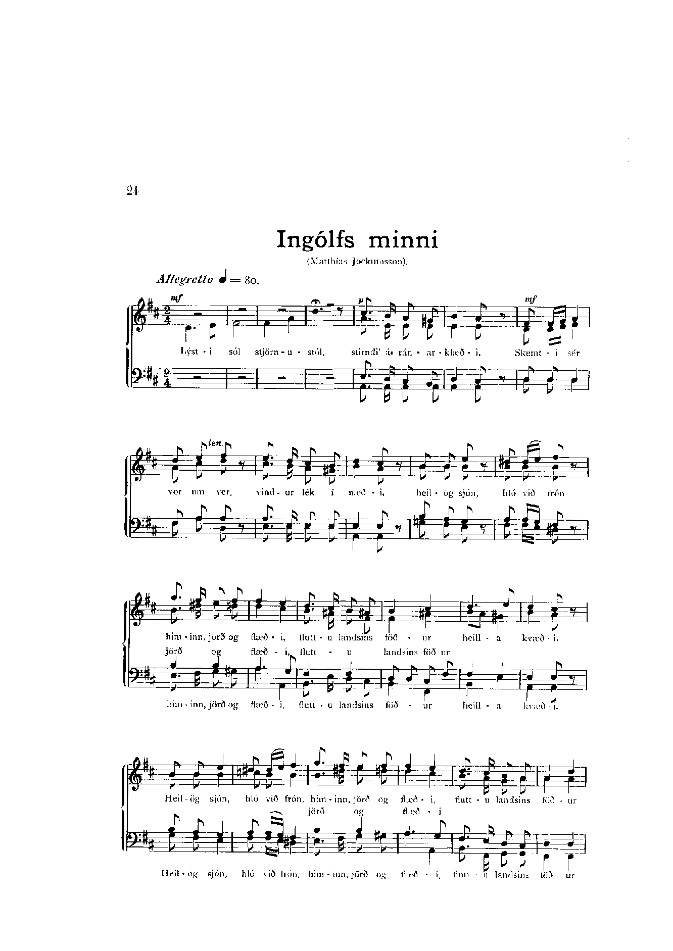 úr „Hörpuhljómar. Íslenzk sönglög fyrir fjórar karlmannaraddir“ sem Sigfús Einarsson tók saman.