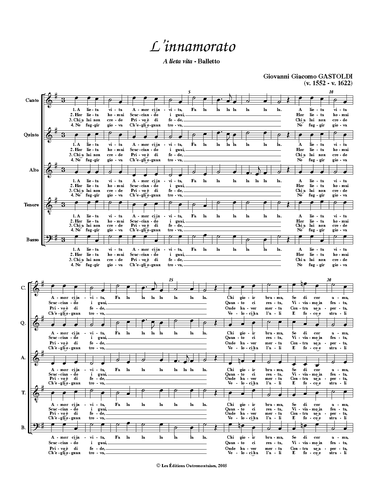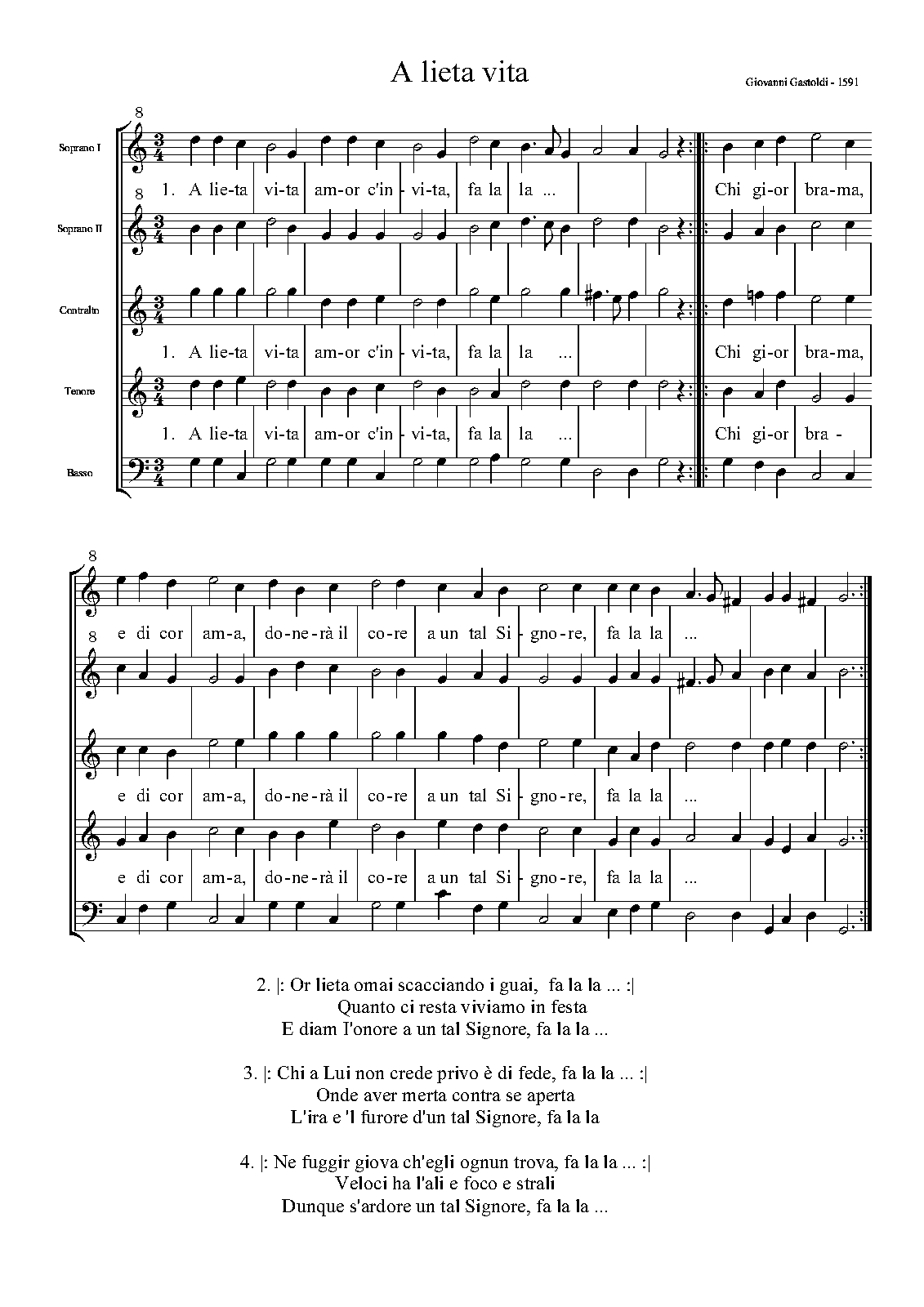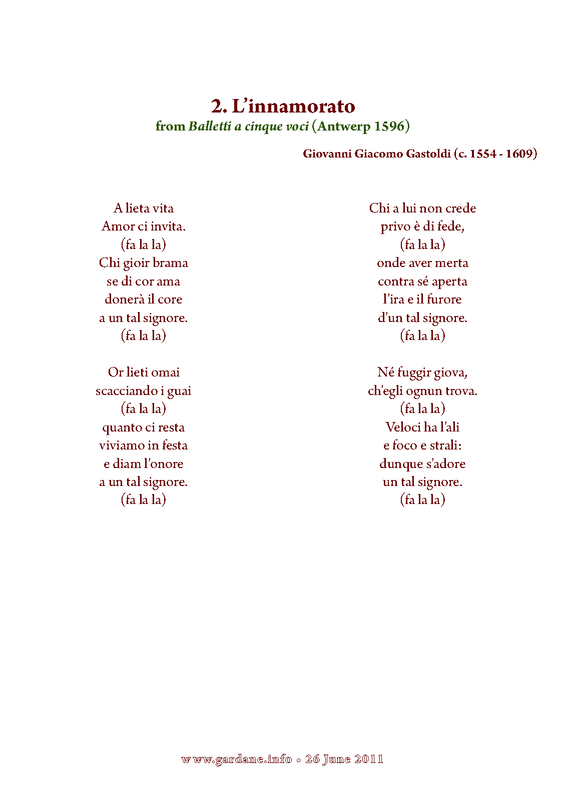 | First Publication | 1591 in Balletti a cinque voci (No.2) |