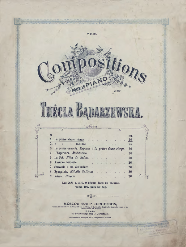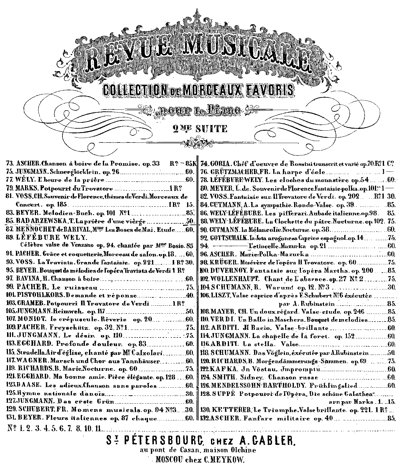 Revue musicale: Collections de morceaux favoris pour la piano, No.85 St. Petersburg: A. Gabler, n.d.(after 1860). Plate 476.