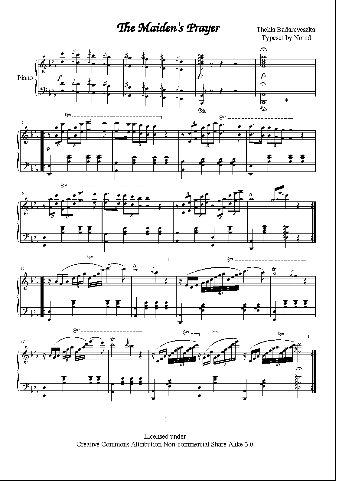 少女的祈祷; 少女的祈禱; Maiden's Prayer; มอดลิตฟาแจวิตซือ; Gebet einer Jungfrau; La prière d'une vierge; Modlitwa Dziewicy Op. 4; 乙女の祈り; 소녀 의 기도; Rugăciunea unei fecioare; Preĝo de Knabino