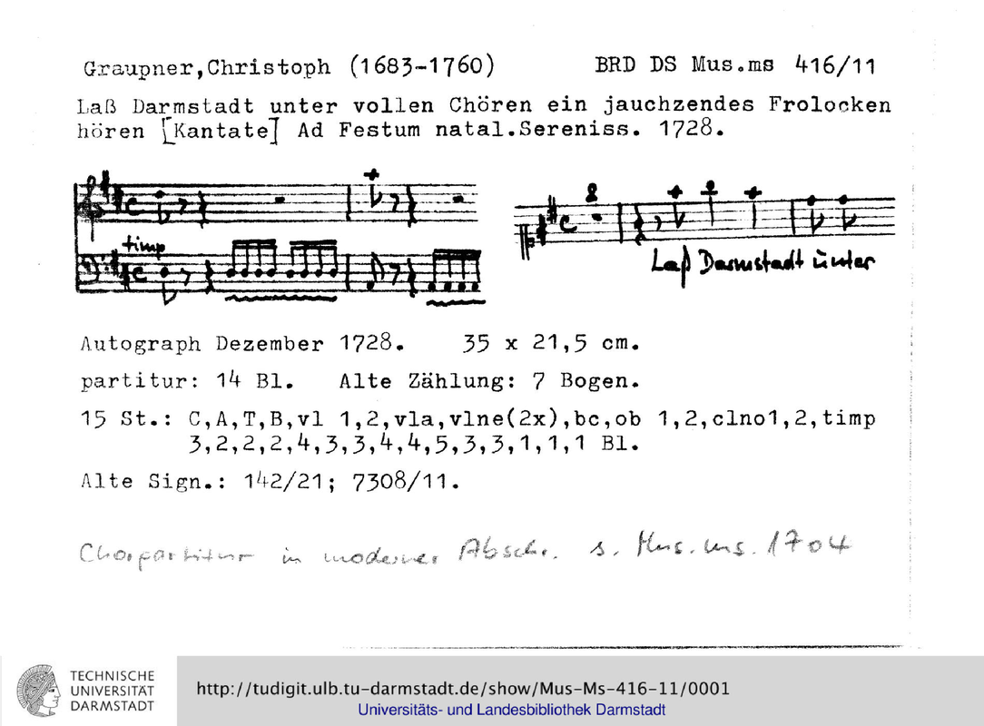 | Work Title | Laß Darmstadt unter vollen Chören ein jauchzendes Frolocken hören |