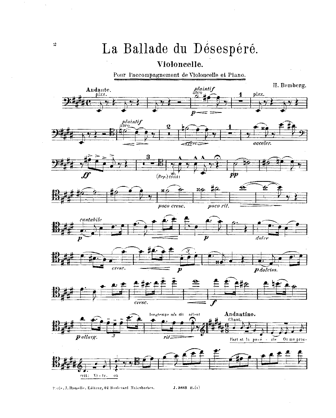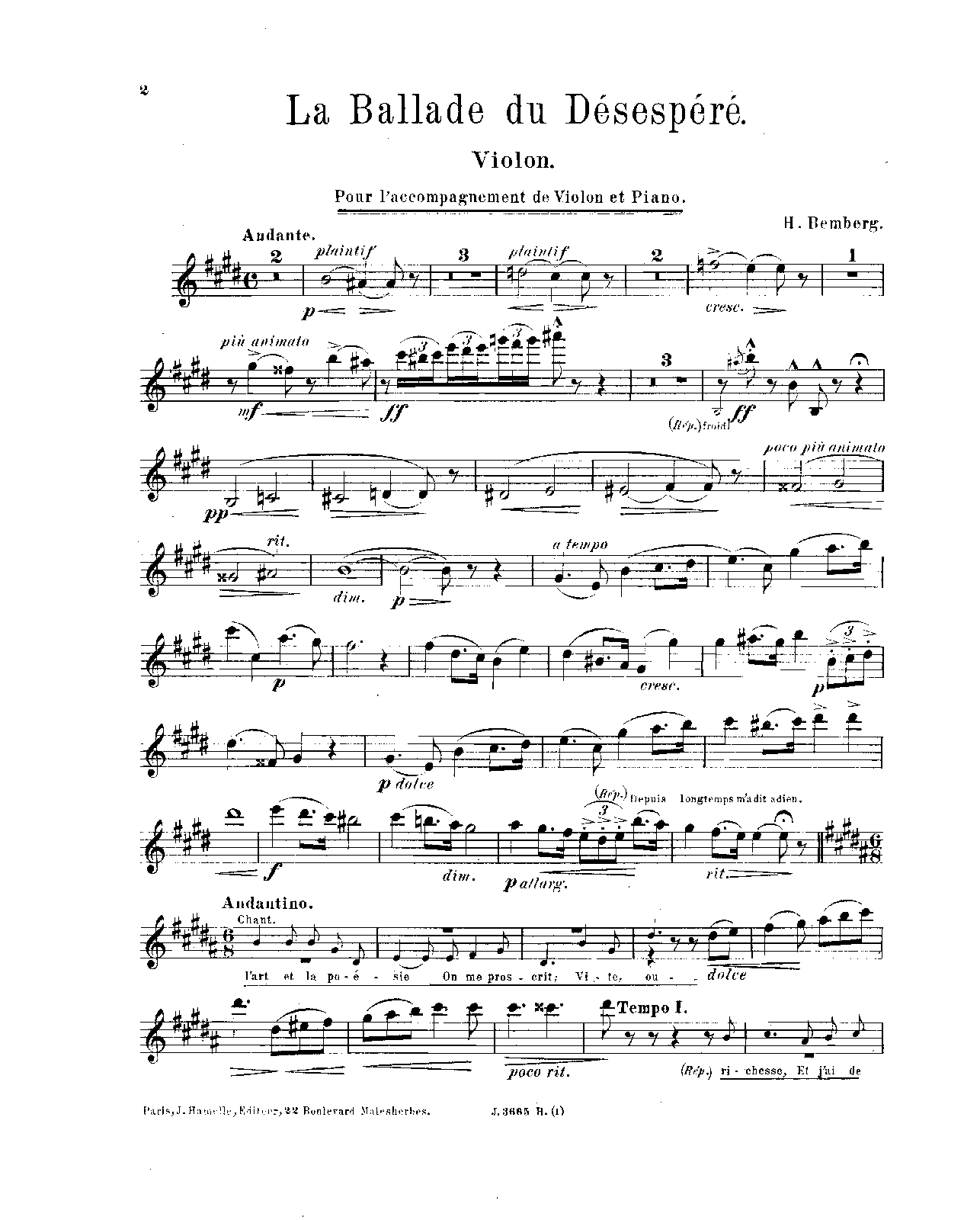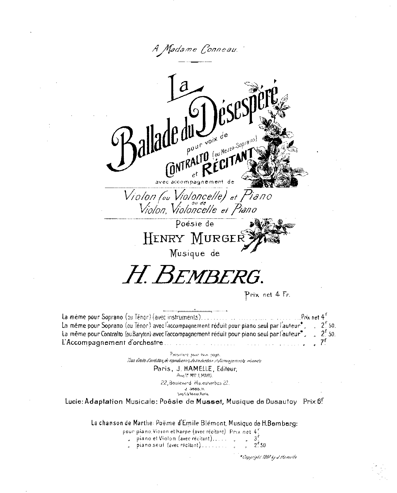 Paris: J. Hamelle, 1897. Plate J.3665 H.