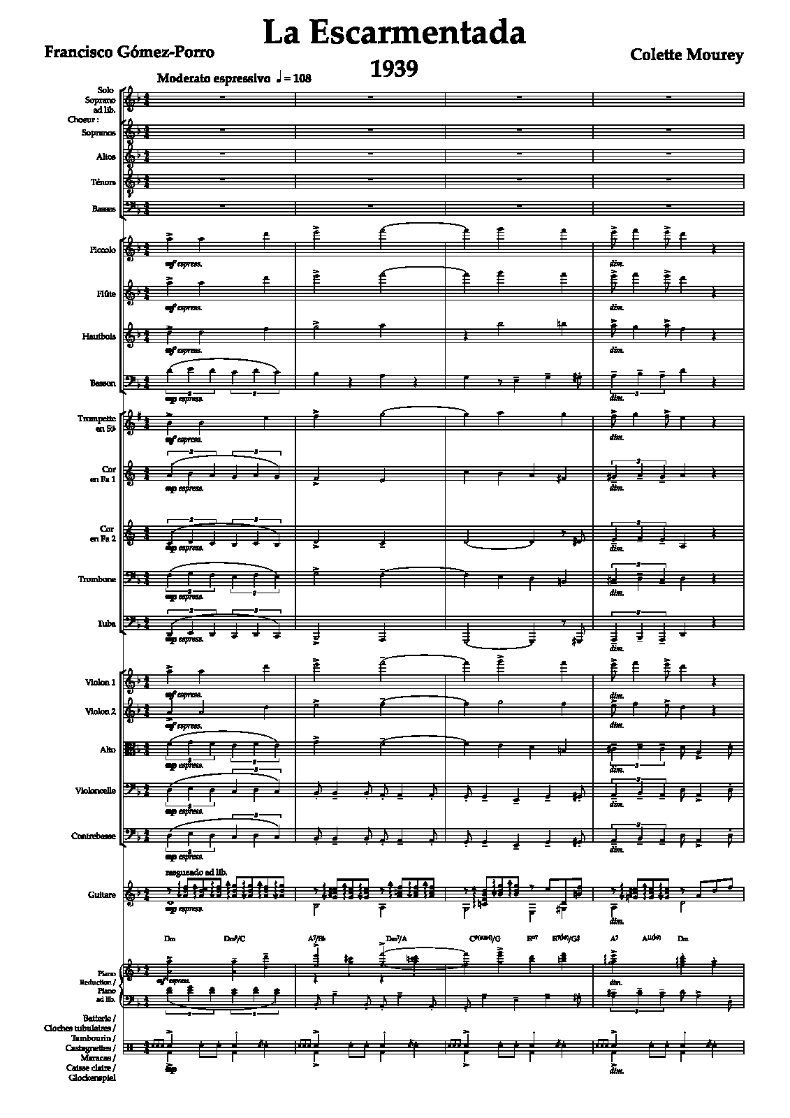 | Work Title | La Escarmentada pour solo, chœur et orchestre |