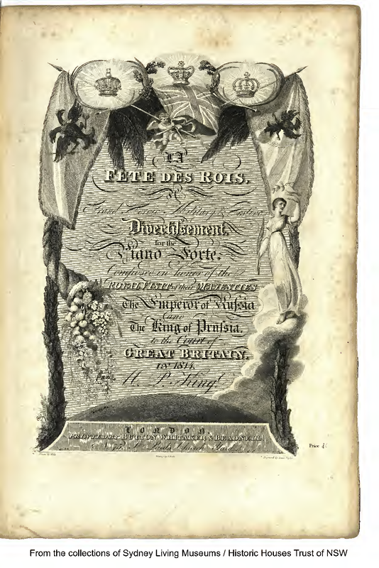 | Alternative. Title | La Fête des Rois, A Grand Heroic Military & Festive Divertissement, for the Piano Forte, composed in honor of the Royal Visit of their Majesties the Emperor of Russia and The King of Prussia to the Court of Great Britain in 1814. |