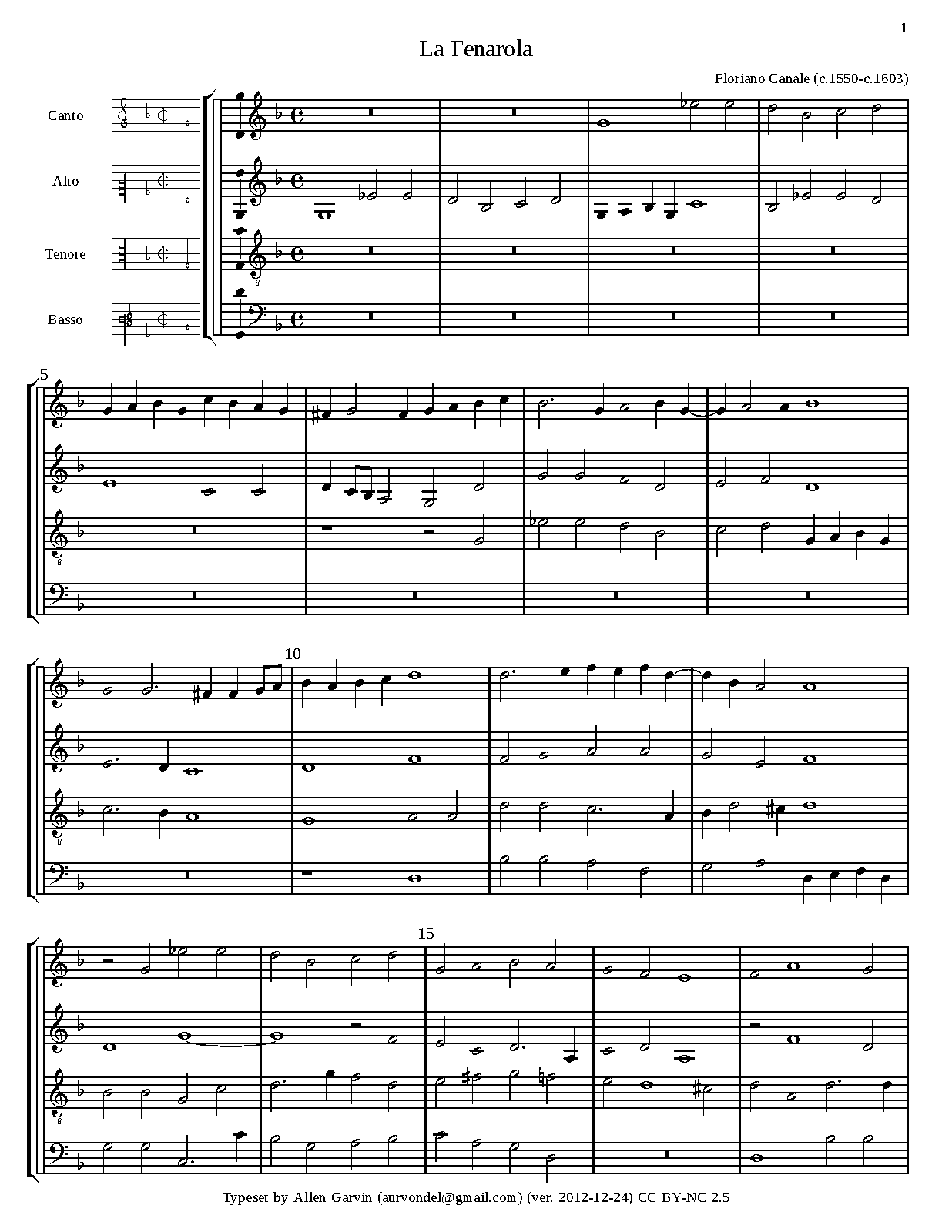 ⇒ 7 more: Canto (treble clef) • Alto (treble clef) • Alto (alto clef) • Tenore (treble octave clef) • Tenore (alto clef) • Basso (bass clef) • Engraving files (Lilypond)