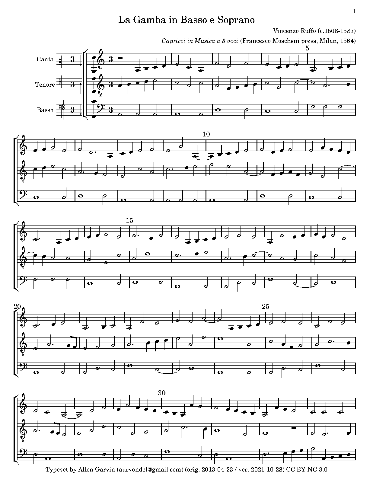 | First Publication | 1564 in Capricci in musica a tre voci (No.13) |