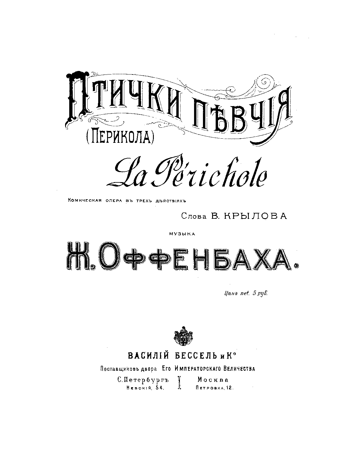 Перикола (оперетта); Պերիկոլա; Pericola; ラ・ペリコール; Perichole, az utcai énekesnő; Perichola