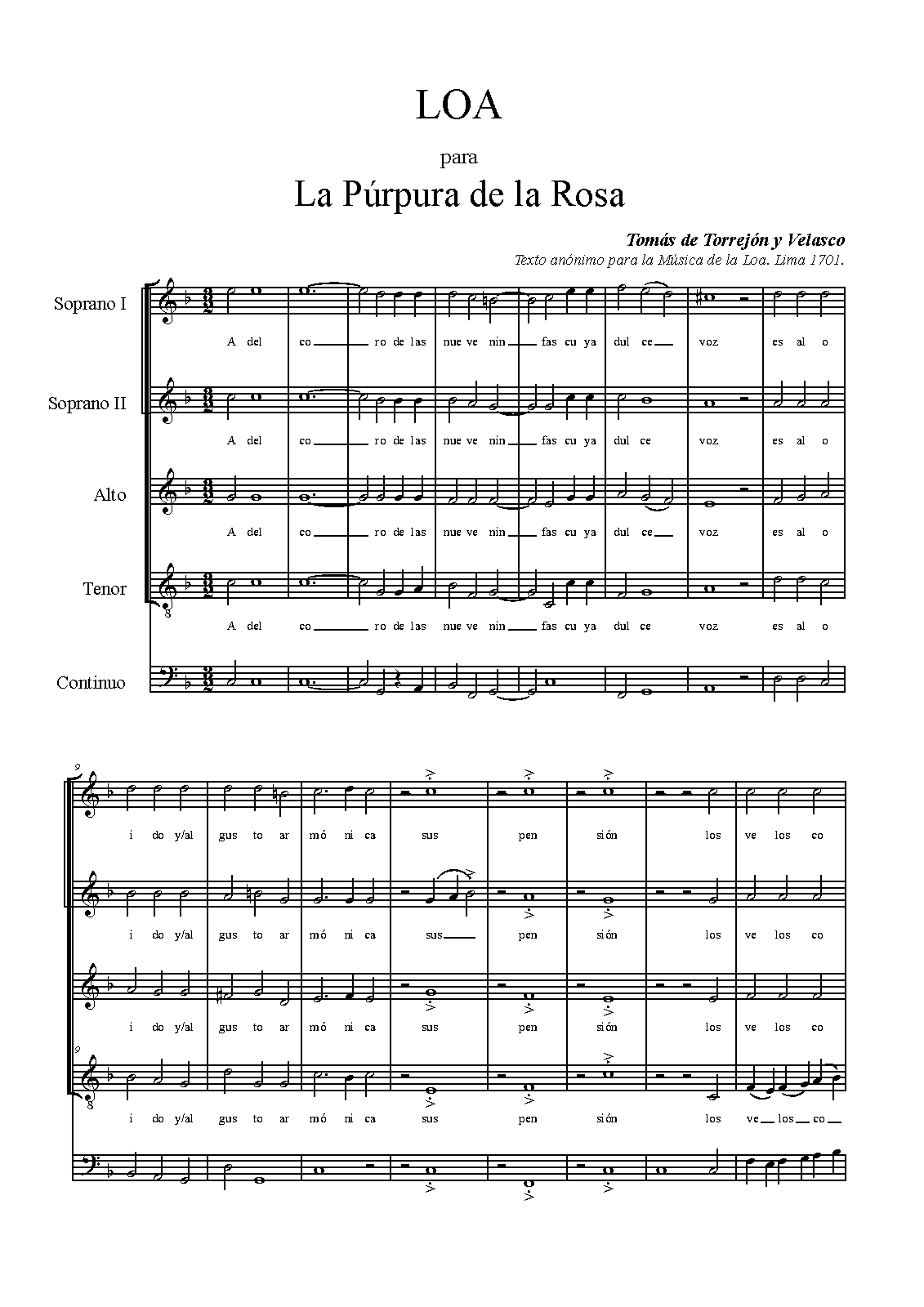 | Extra Information | *According to the Wikipedia article, "The exact instrumentation has not been found in Torrejón y Velasco's surviving original scores. However, the scores of other late seventeenth century musical plays in Spain suggest that the instruments would include harps, guitars, viols, violins, clarino and regular trumpets, drums, and castanets" |