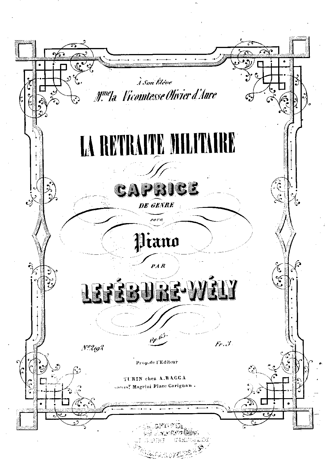 | Dedication | A son élève Mme la Vicomtesse Olivier d'Aure |